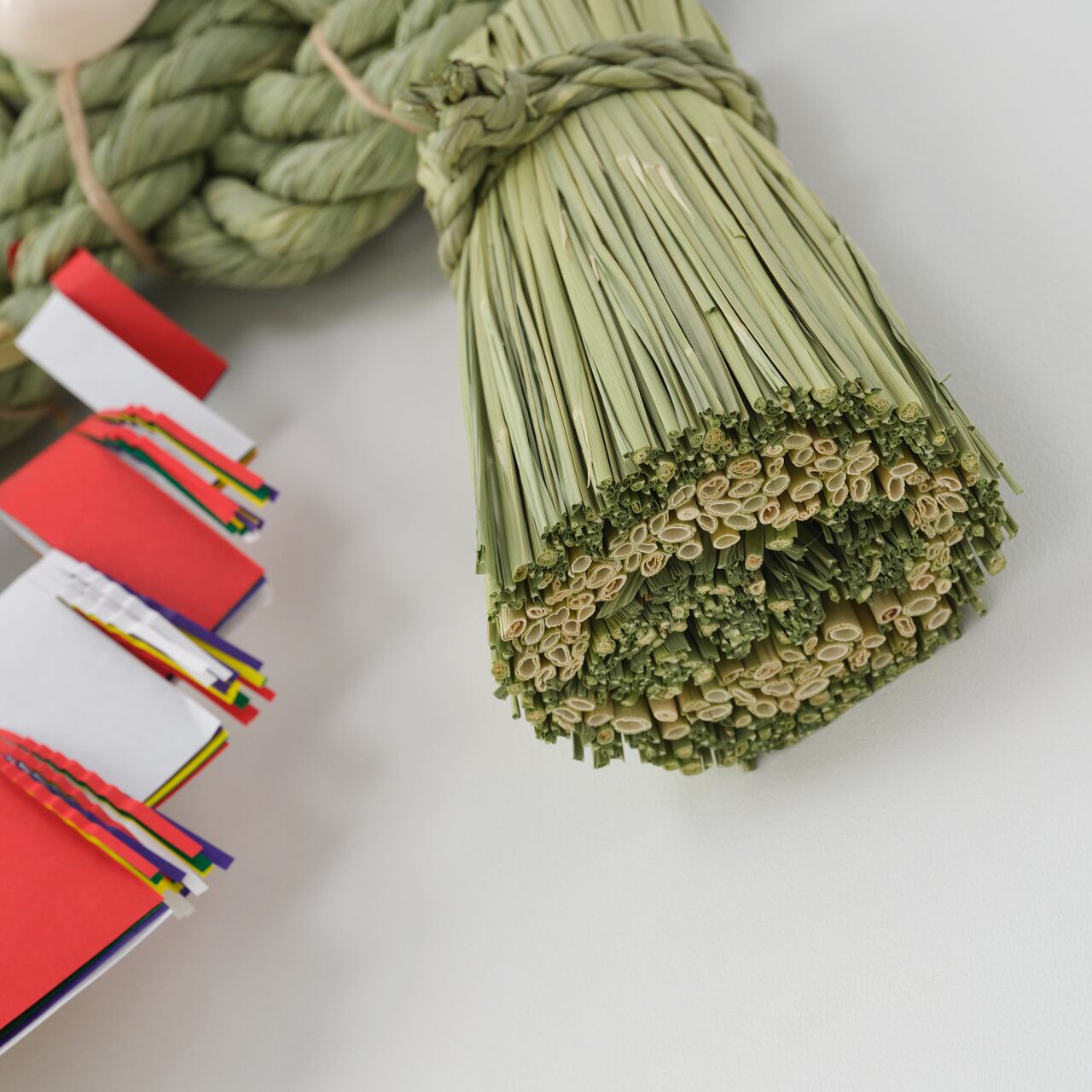 天孫降臨の地、お米作りが始まった場所と言われている土地で育った青藁を使い作られたわら細工を、縁の深い神様と一緒に。