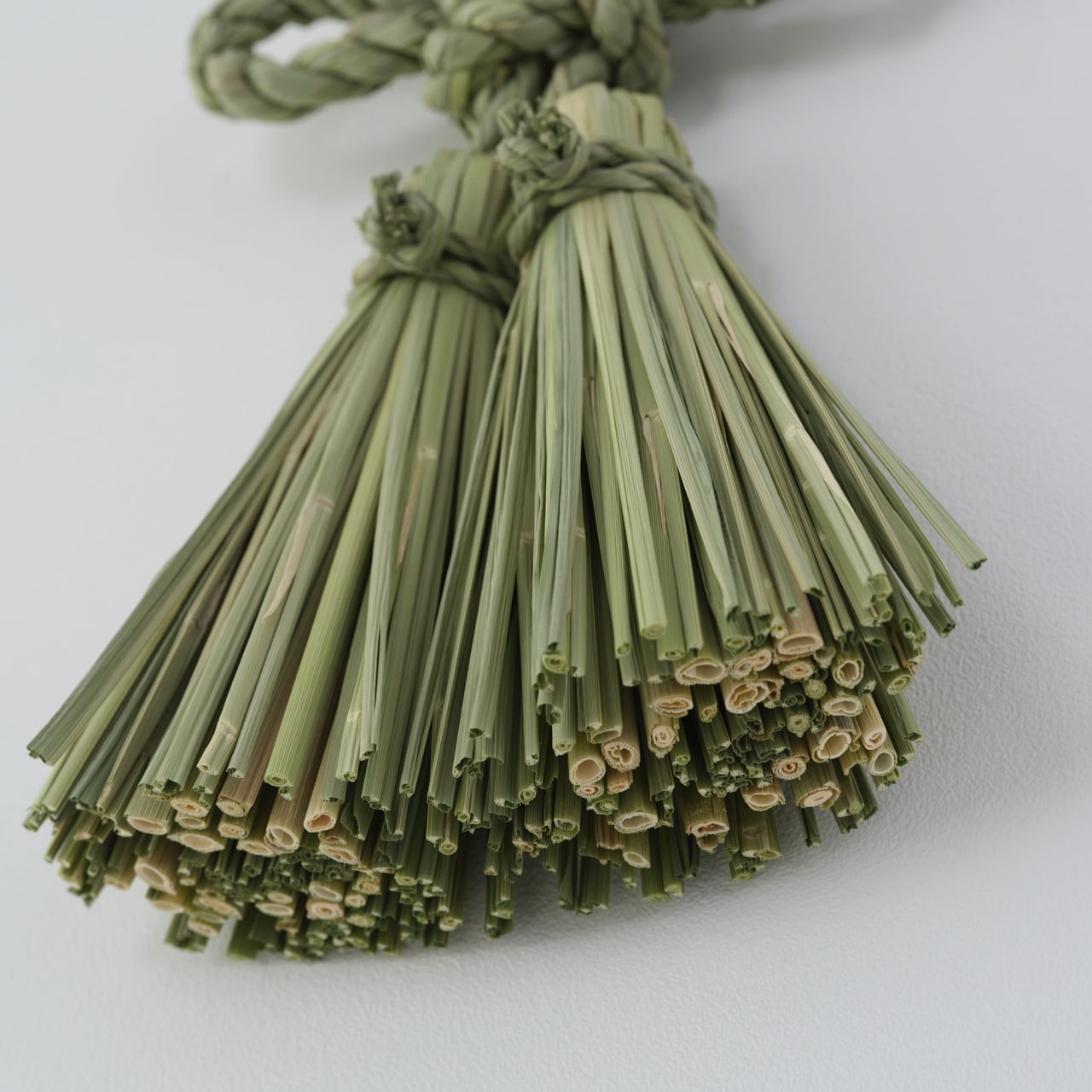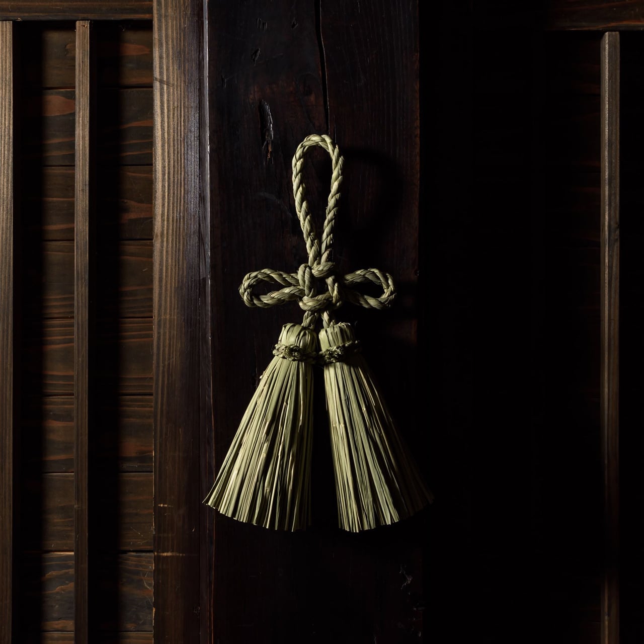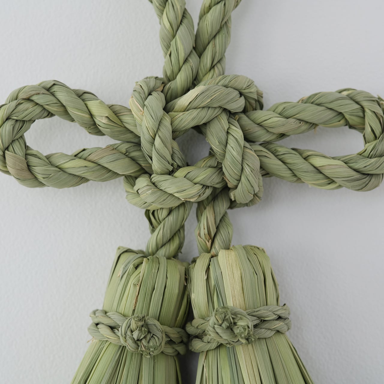 房を繋ぐ中央の結びは魔除けの意味合いも持ち、古くは源氏物語の中にも登場するほど歴史のある総角(あげまき)結びをわら縄で表現されています。