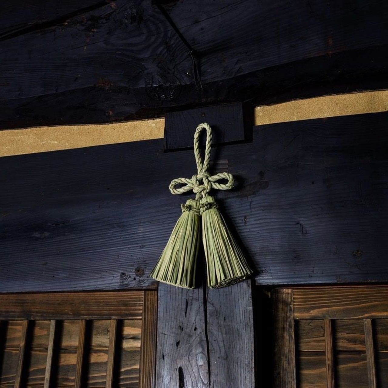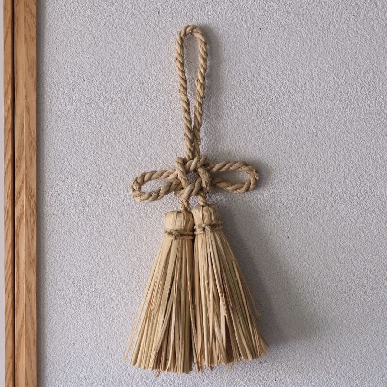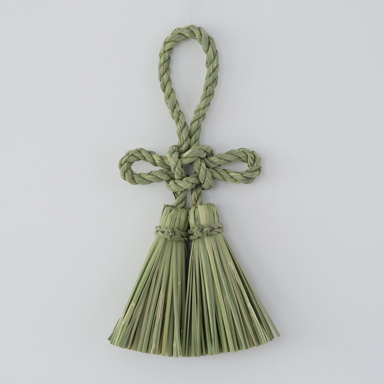房を繋ぐ中央の結びは魔除けの意味合いも持ち、古くは源氏物語の中にも登場するほど歴史のある総角(あげまき)結びをわら縄で表現されています。