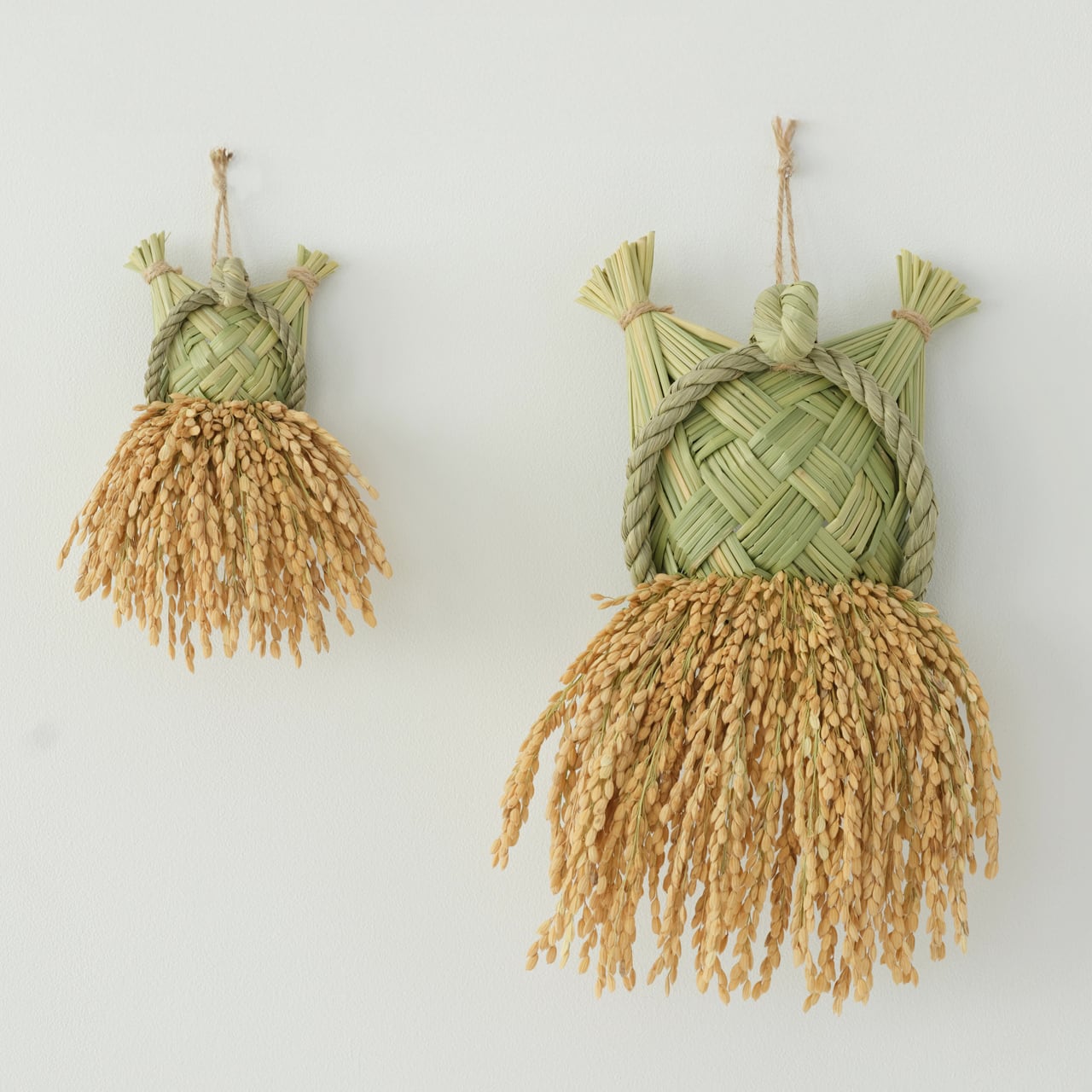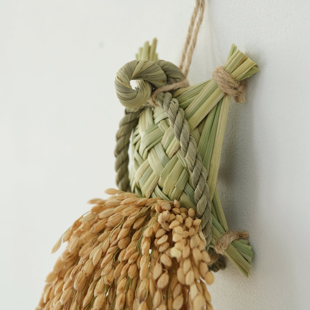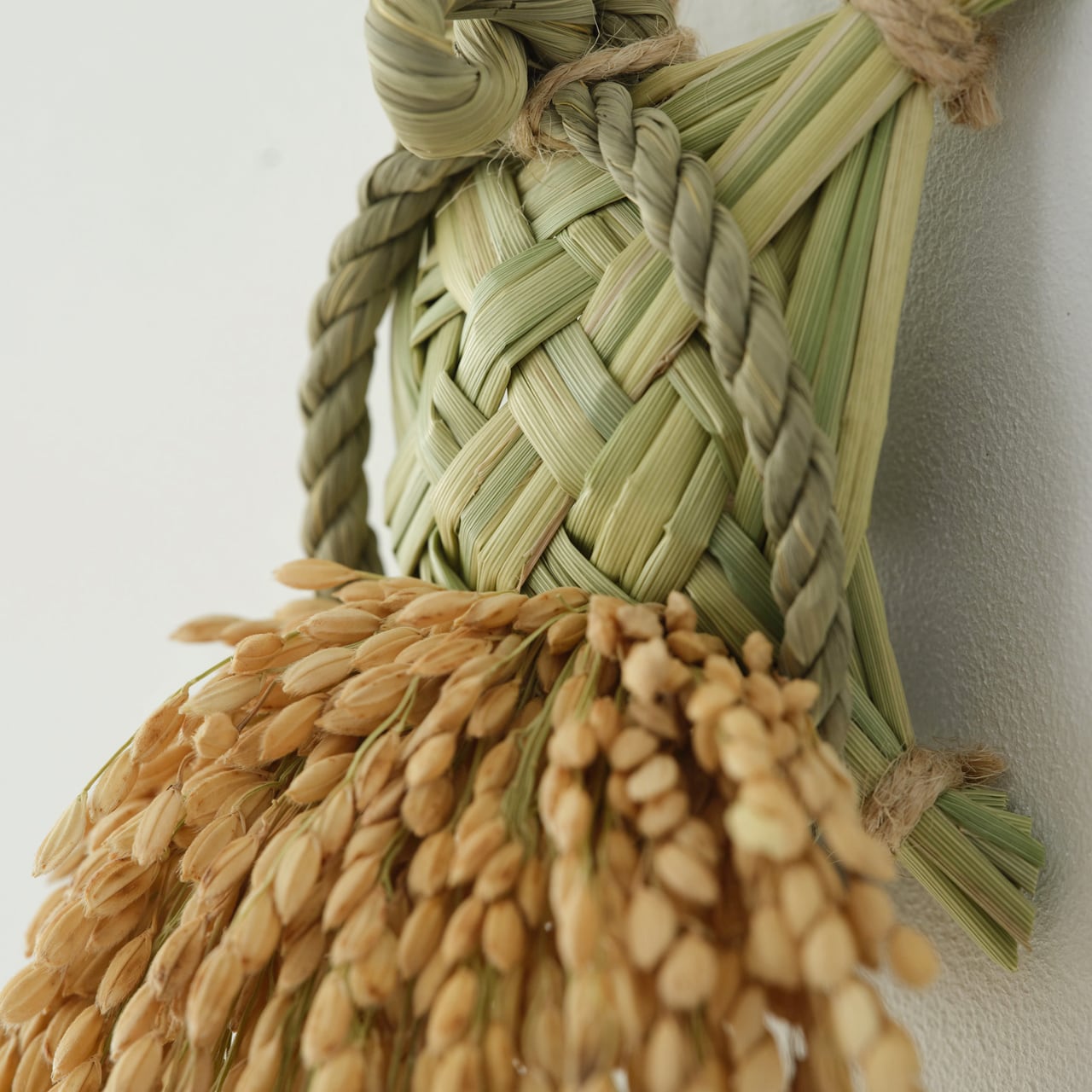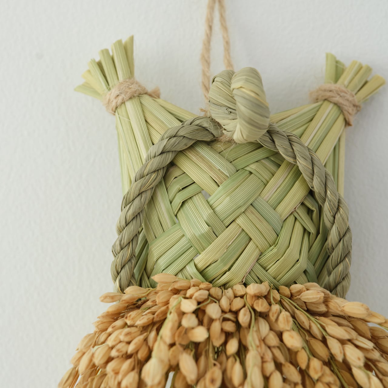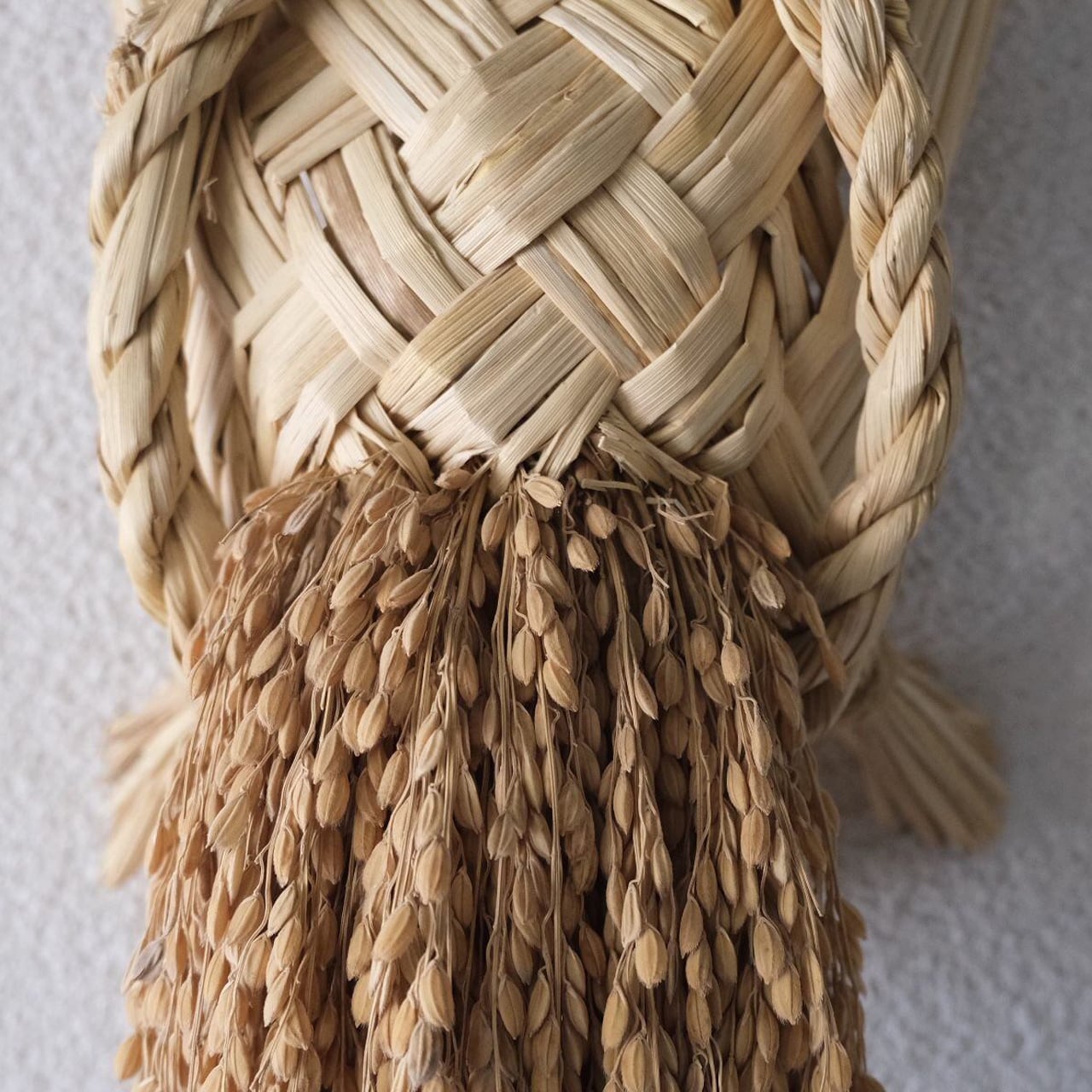 大サイズの場合、1メートル四方の田んぼから一匹しか作れないほど一本一本材料を吟味して、ミゴと呼ばれる1番良質な稲藁だけを使って形作られる祝亀。