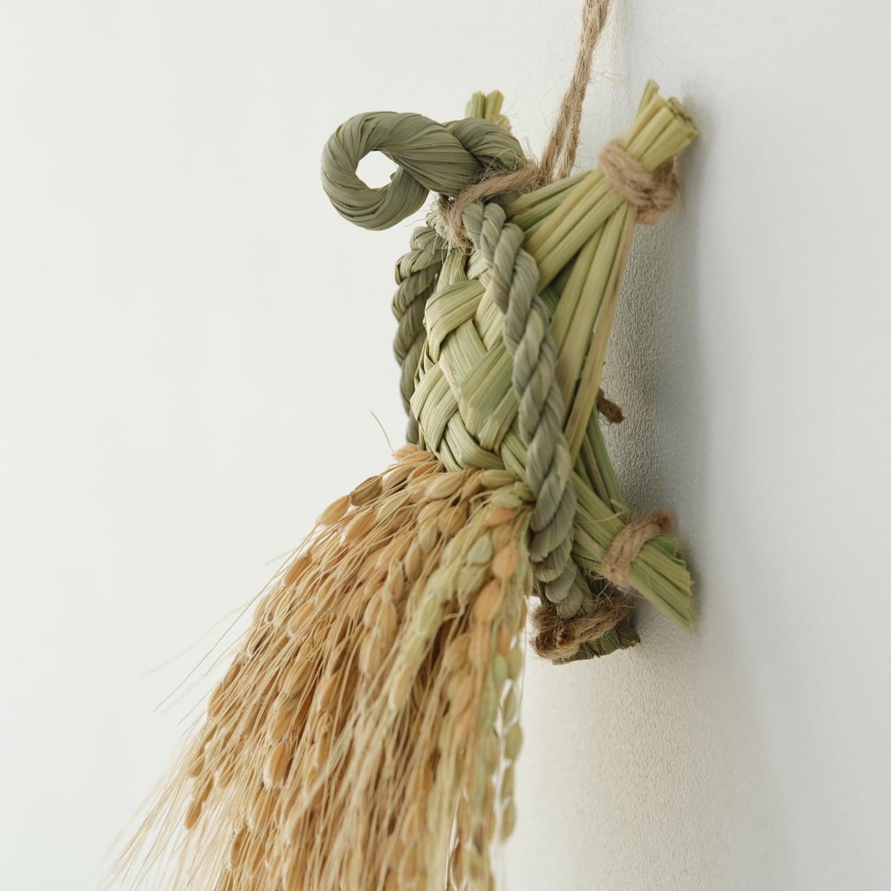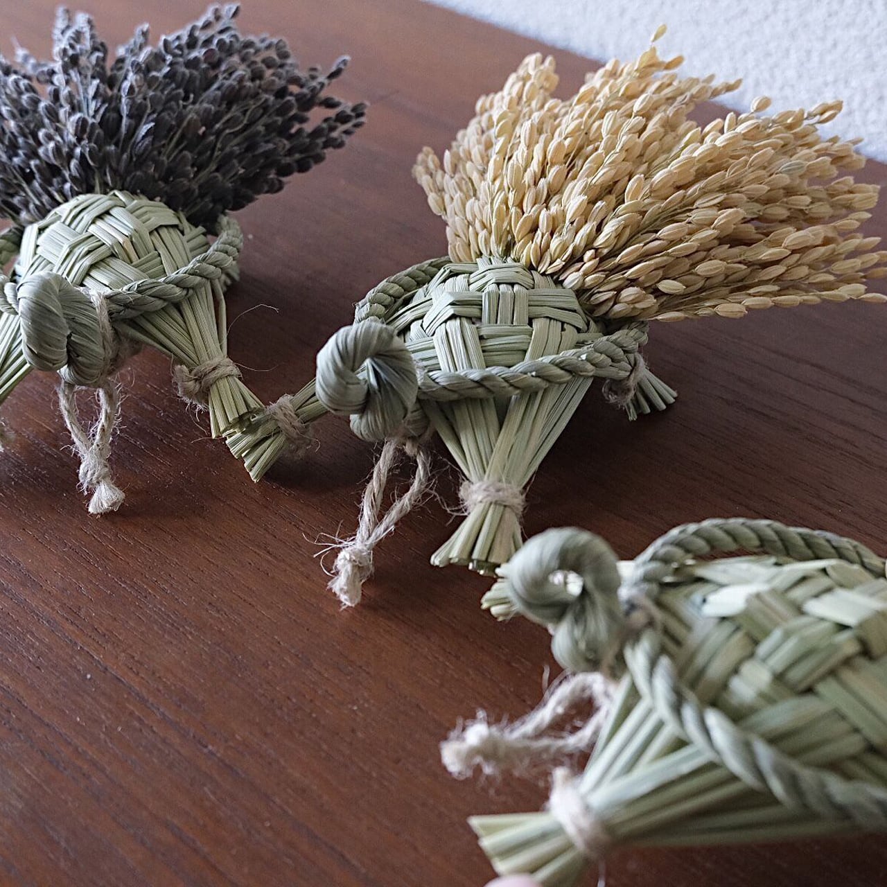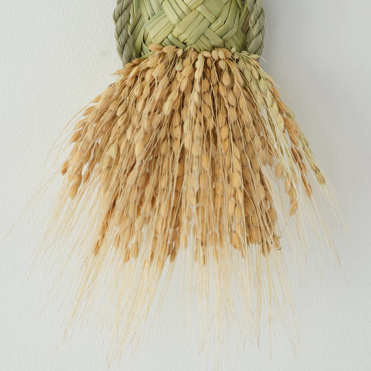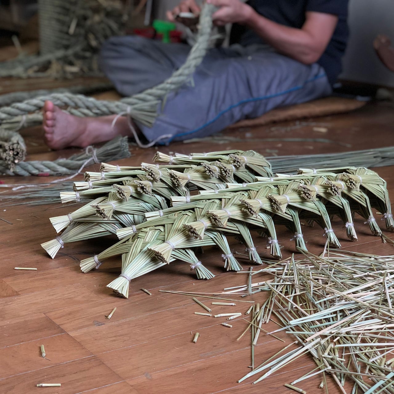 大サイズの場合、1メートル四方の田んぼから一匹しか作れないほど一本一本材料を吟味して、ミゴと呼ばれる1番良質な稲藁だけを使って形作られる祝亀。