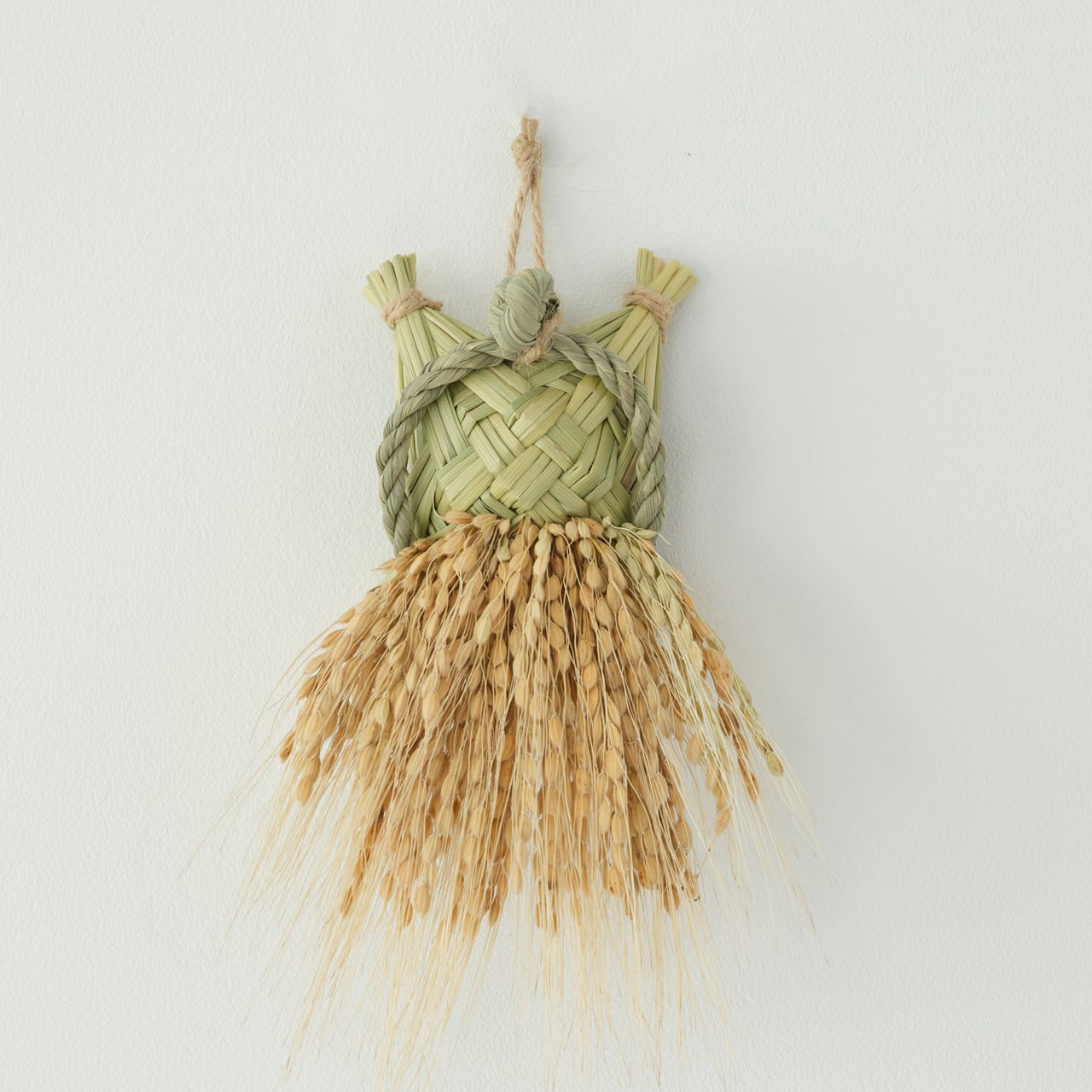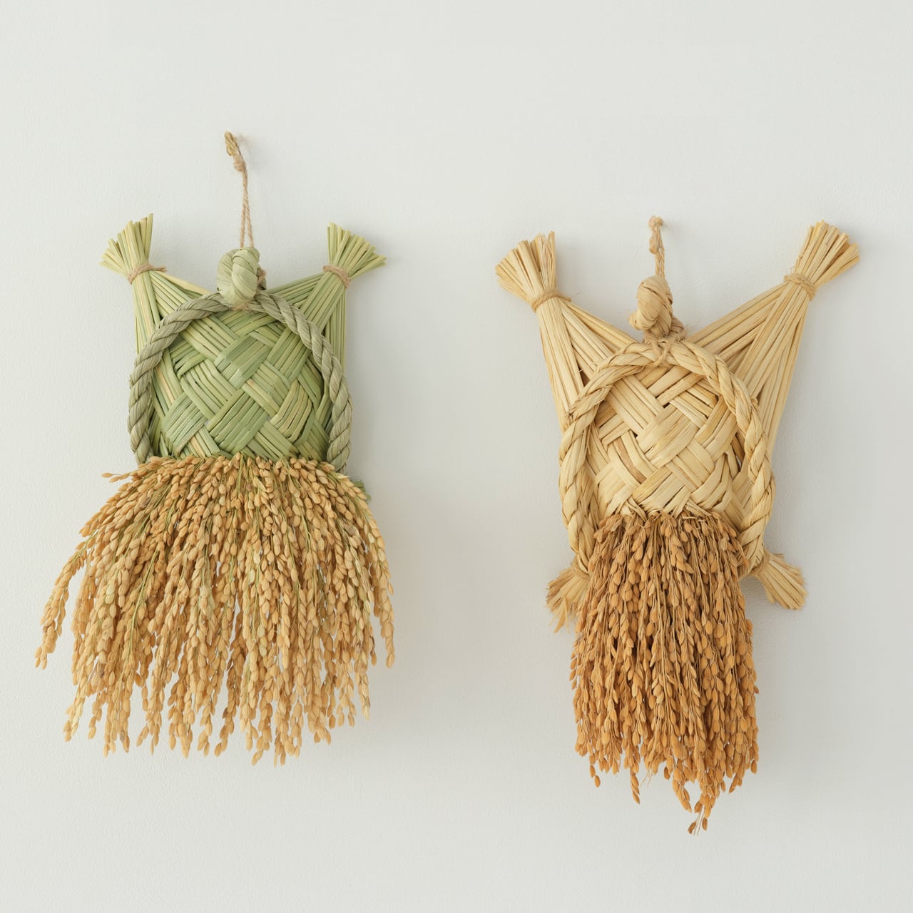 白米の稲穂が添えられた祝亀は、時間の流れと共に少しずつ本体の色が稲藁色へと変わっていき、同系色の優しい佇まいへと落ち着いてきます。