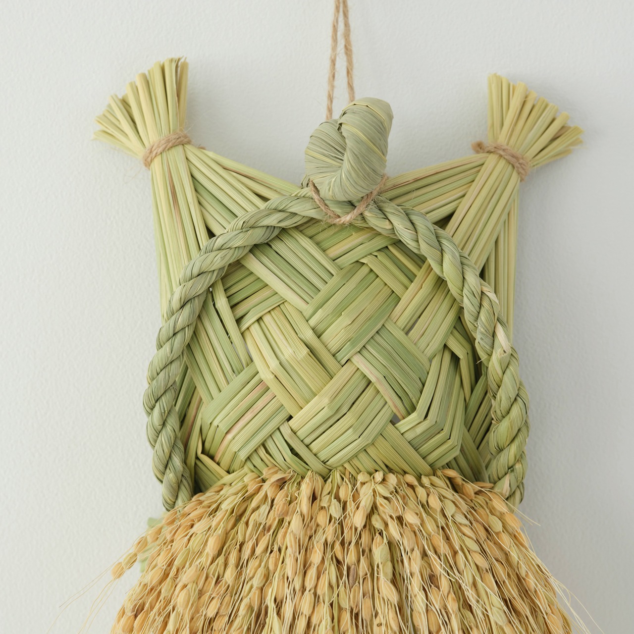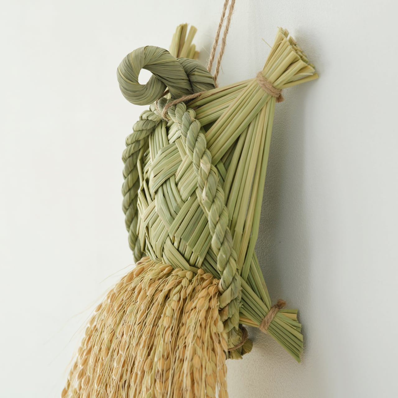 白米の稲穂が添えられた祝亀は、時間の流れと共に少しずつ本体の色が稲藁色へと変わっていき、同系色の優しい佇まいへと落ち着いてきます。