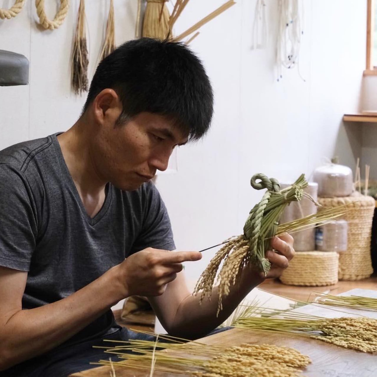 1メートル四方の田んぼから一匹しか作れないほど一本一本材料を吟味して、ミゴと呼ばれる一番良質な稲藁だけを使って形作られる祝亀。