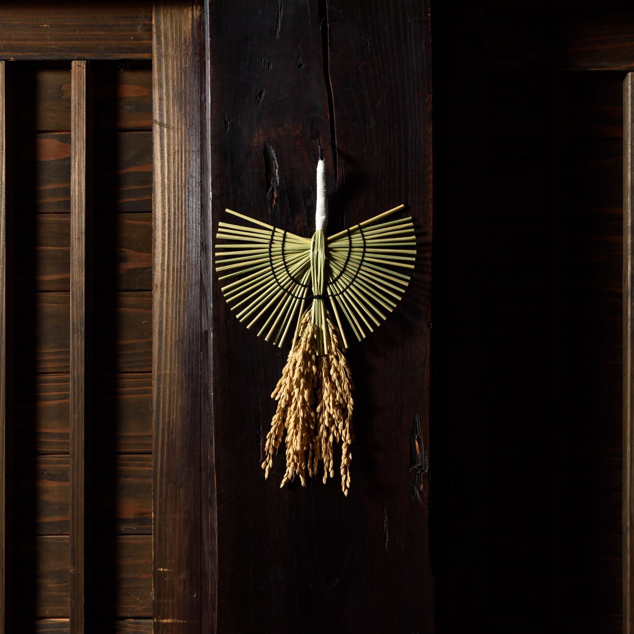 定番の稲穂が添えられた祝鶴は、時間の流れと共に少しずつ本体の色が稲藁色へと変わっていき、同系色の優しい佇まいへと落ち着いてきます。