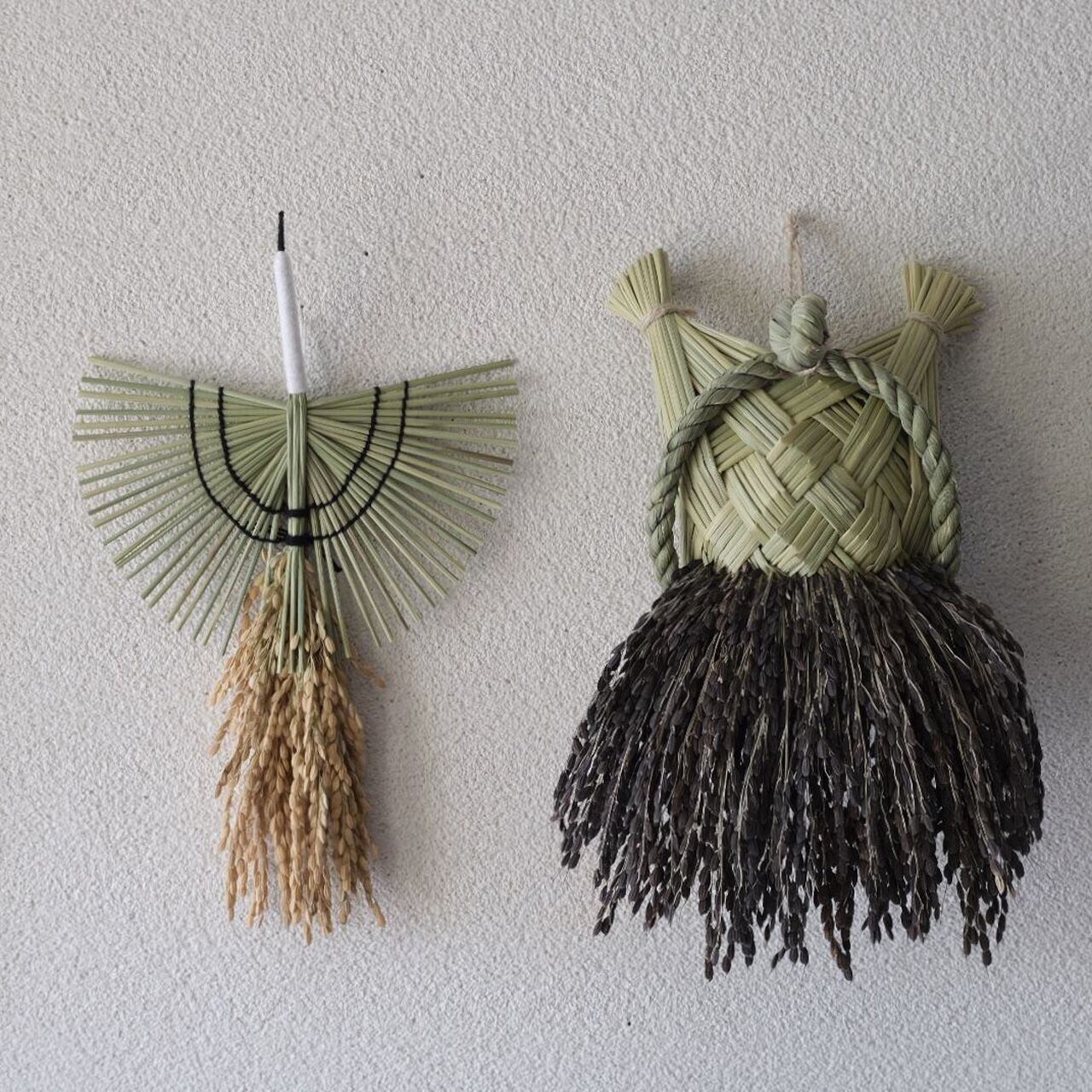 ご自宅用に贈り物に、鶴亀セットでお求め下さるお客様も多いです。定番と黒米の稲穂を紅白に見立てると、よりめでたく明るい気持ちでお飾り頂けますよ。