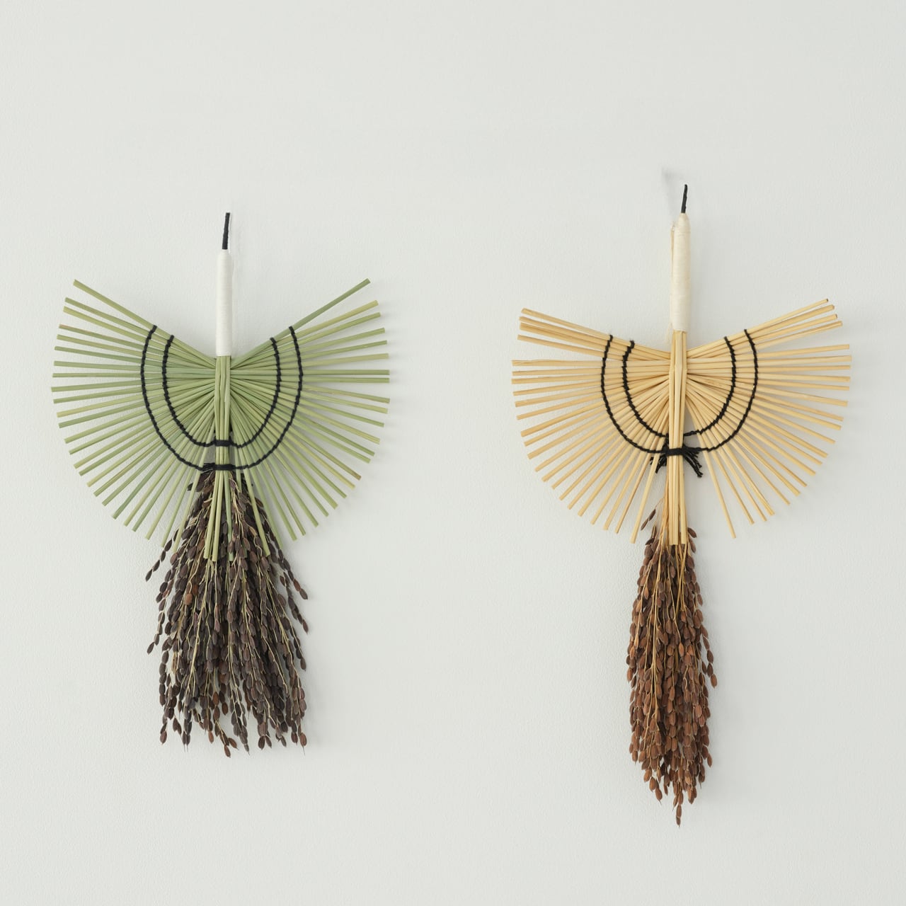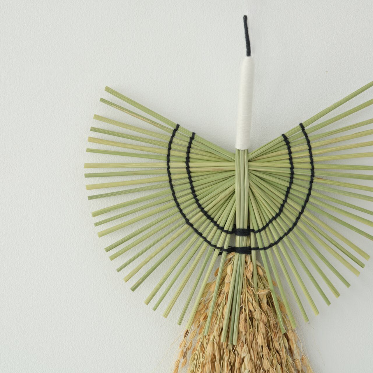 白米の稲穂が添えられた祝鶴は、時間の流れと共に少しずつ本体の色が稲藁色へと変わっていき、同系色の優しい佇まいへと落ち着いてきます。