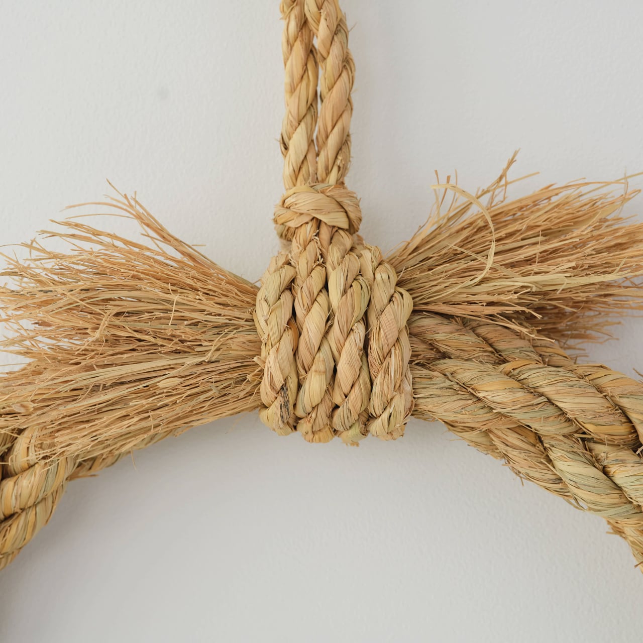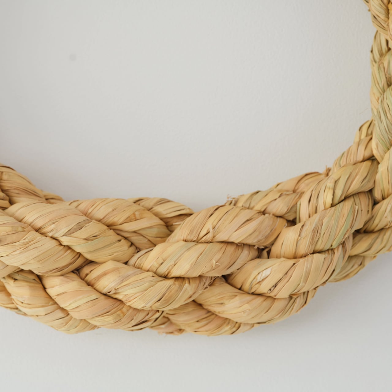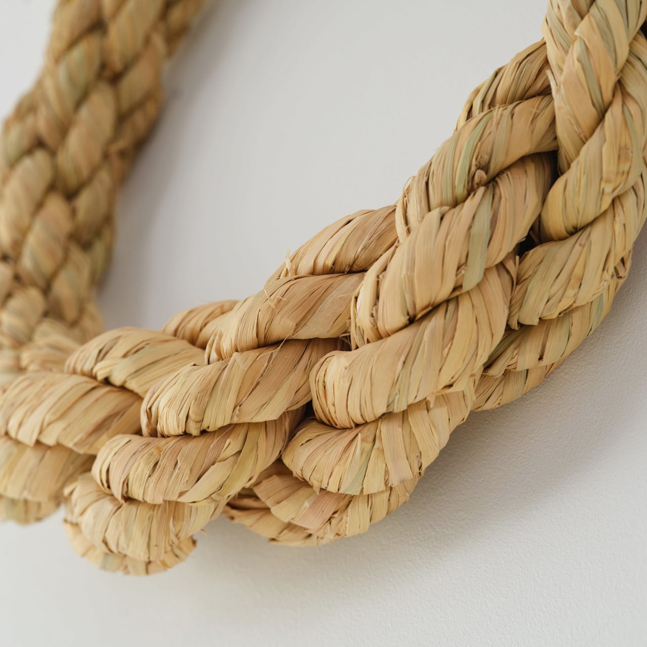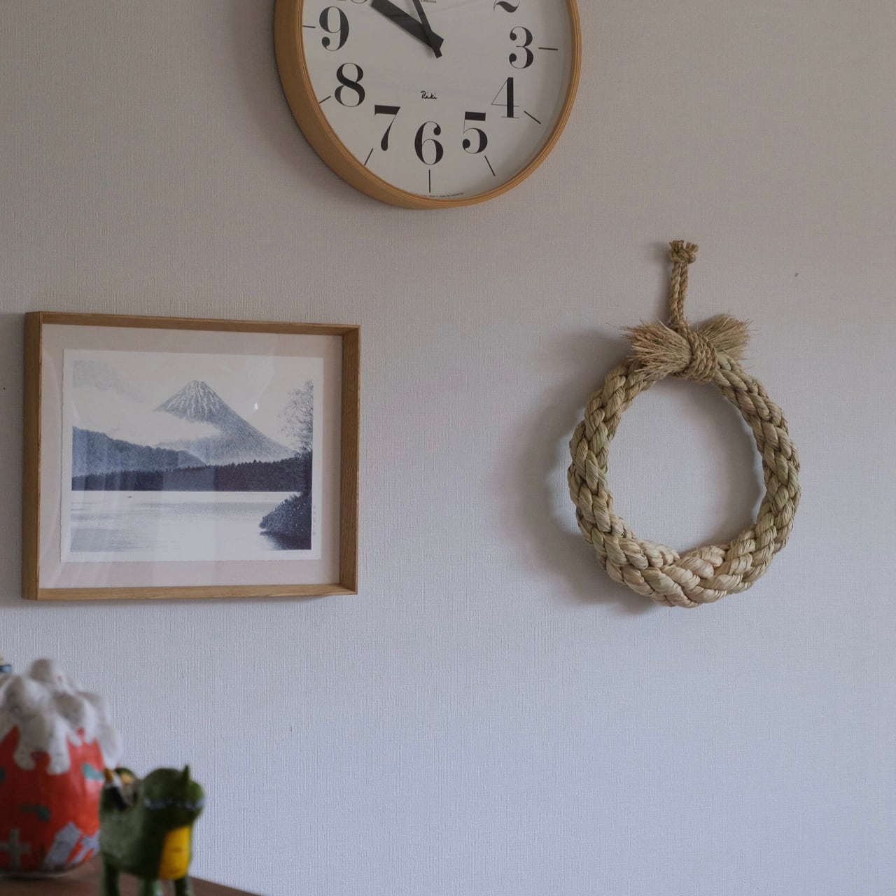 七五三縄(しめなわ)を作る際に使われる左綯いの縄三本を更に左綯いで綯い上げ、まあるく形作られた宝珠は、稲藁と縄の生き生きとした力強さと柔らかさを感じて頂ける一品です。