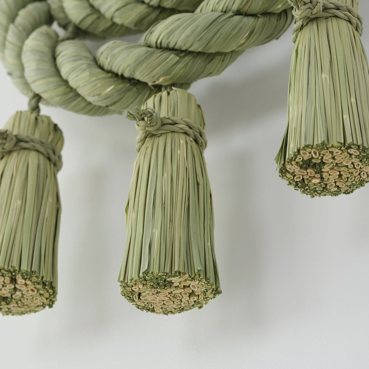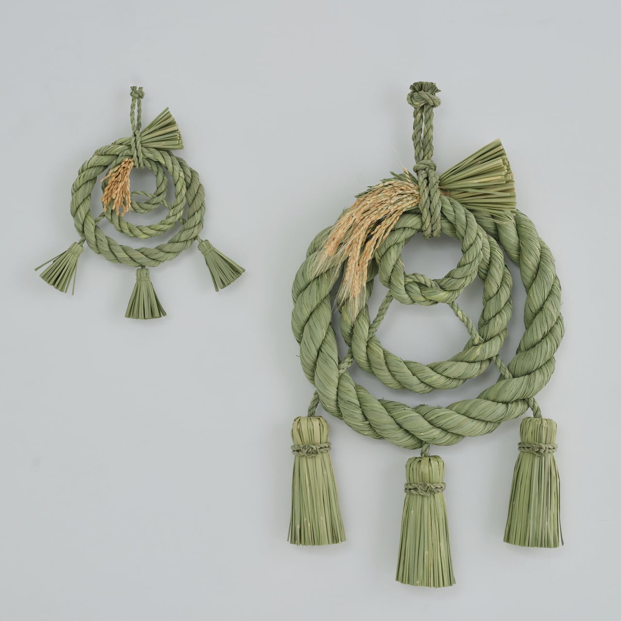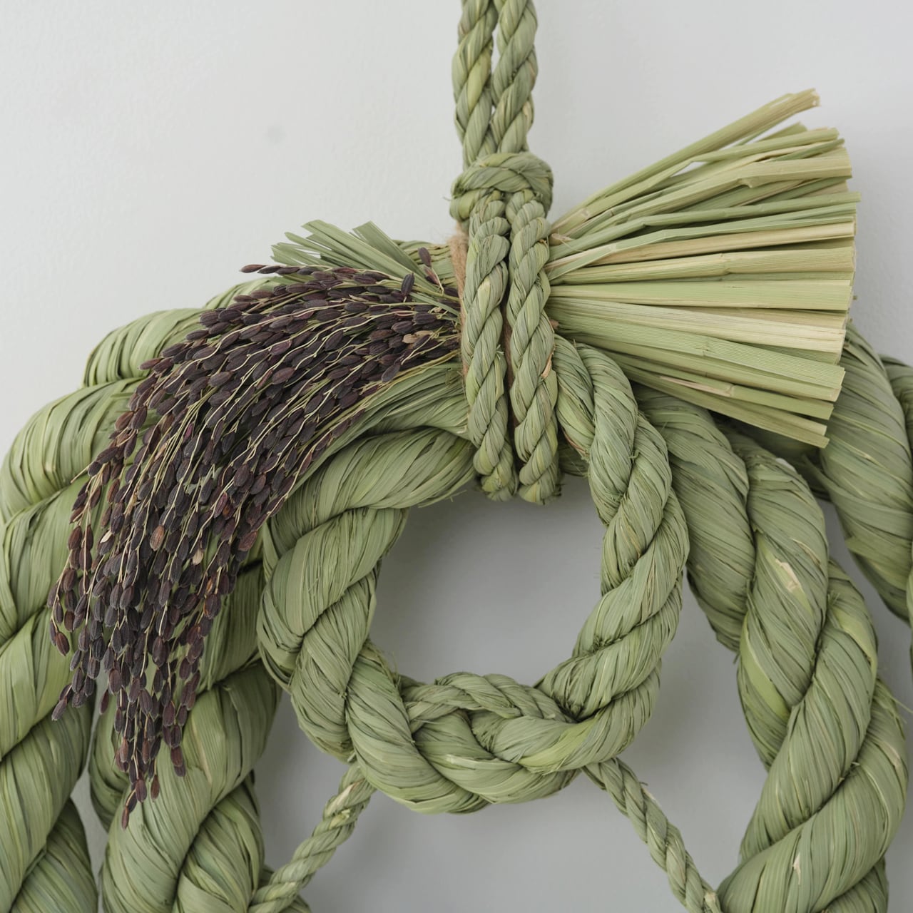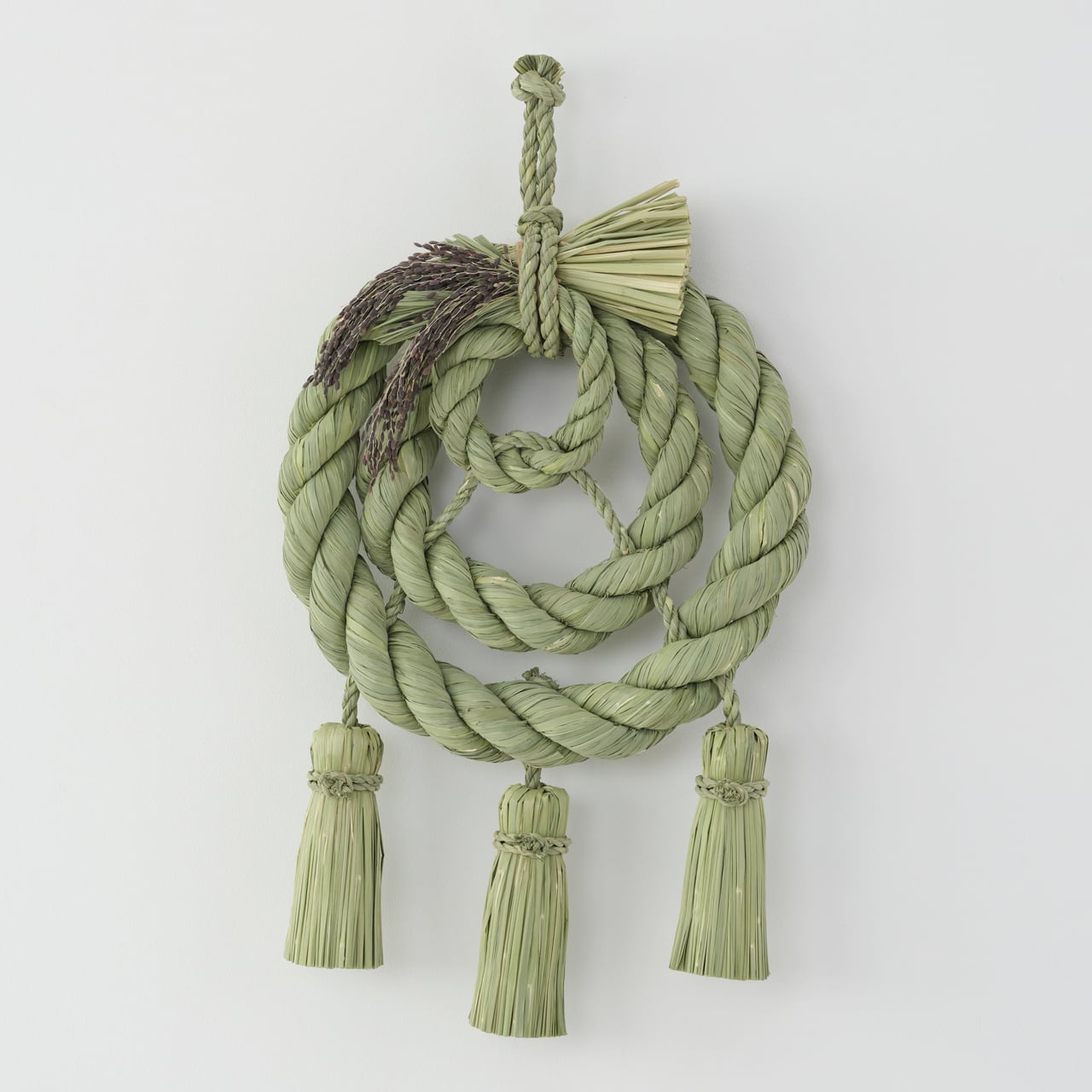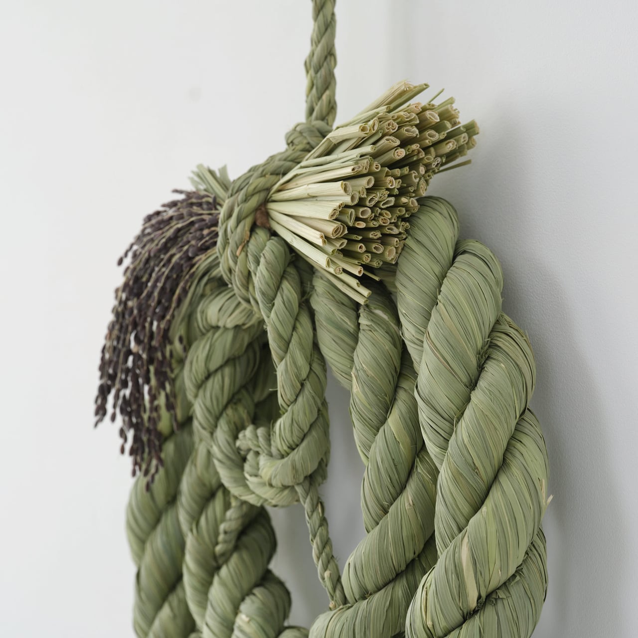 丹念に仕上げられた左綯い(ひだりない)の縄が、美しく円を描く柔らかなシルエットを見ていると、穏やかで優しい気持ちになる平和結び。