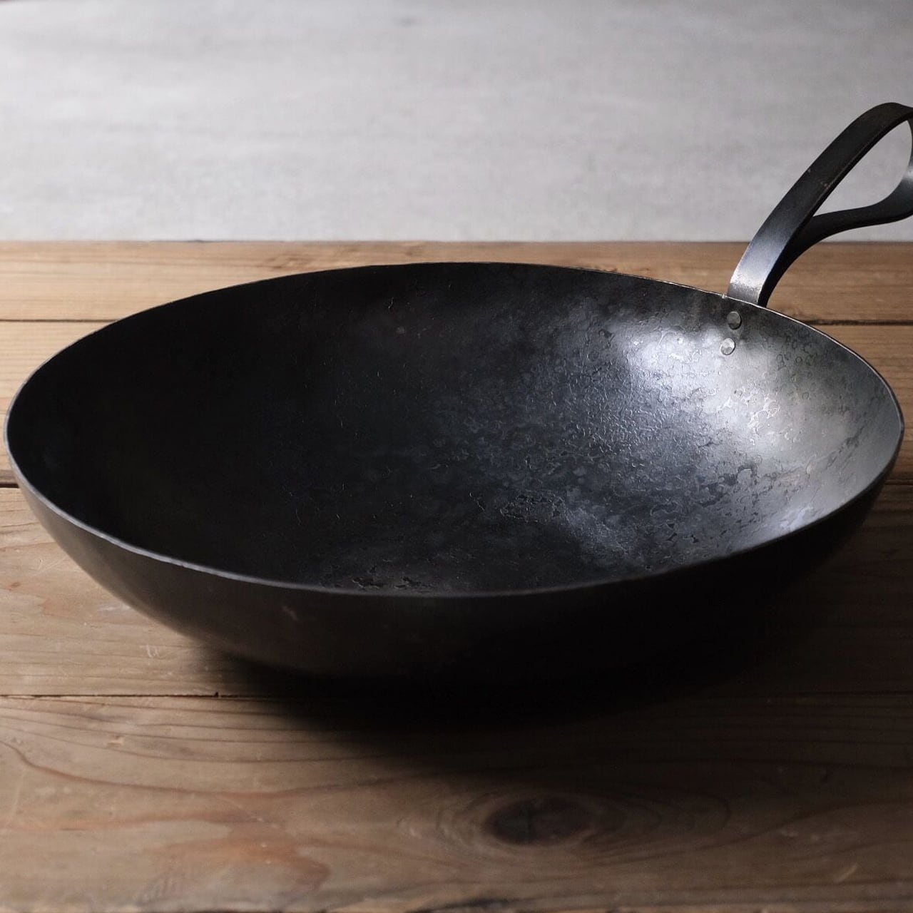 深みあるの中華鍋は炒める料理におすすめの鉄鍋です。野菜は弾むように気持ちよく、香ばしく炒めることができます。ゆったりとした形で揚げ物などの作業も楽しくして頂けます。