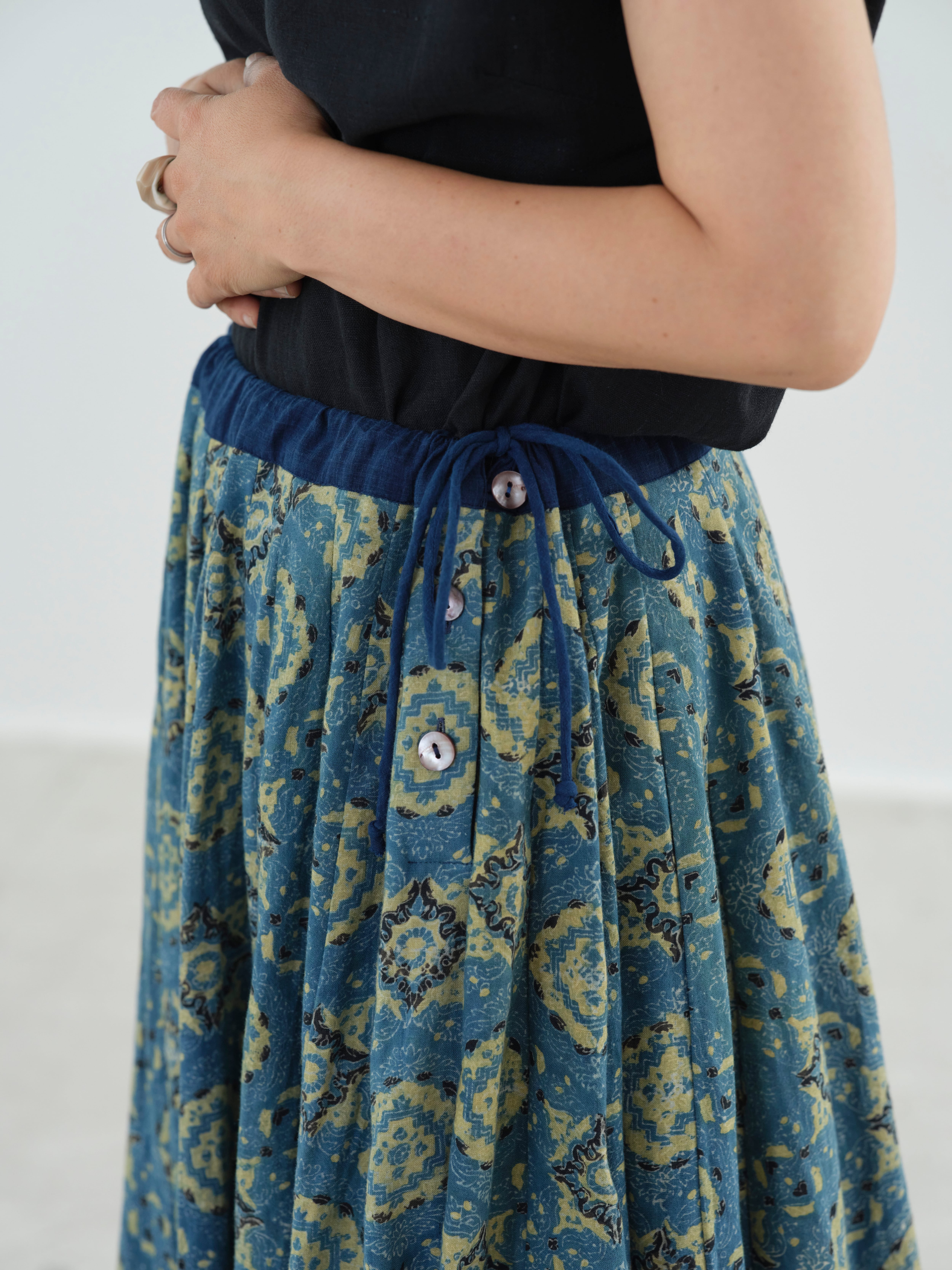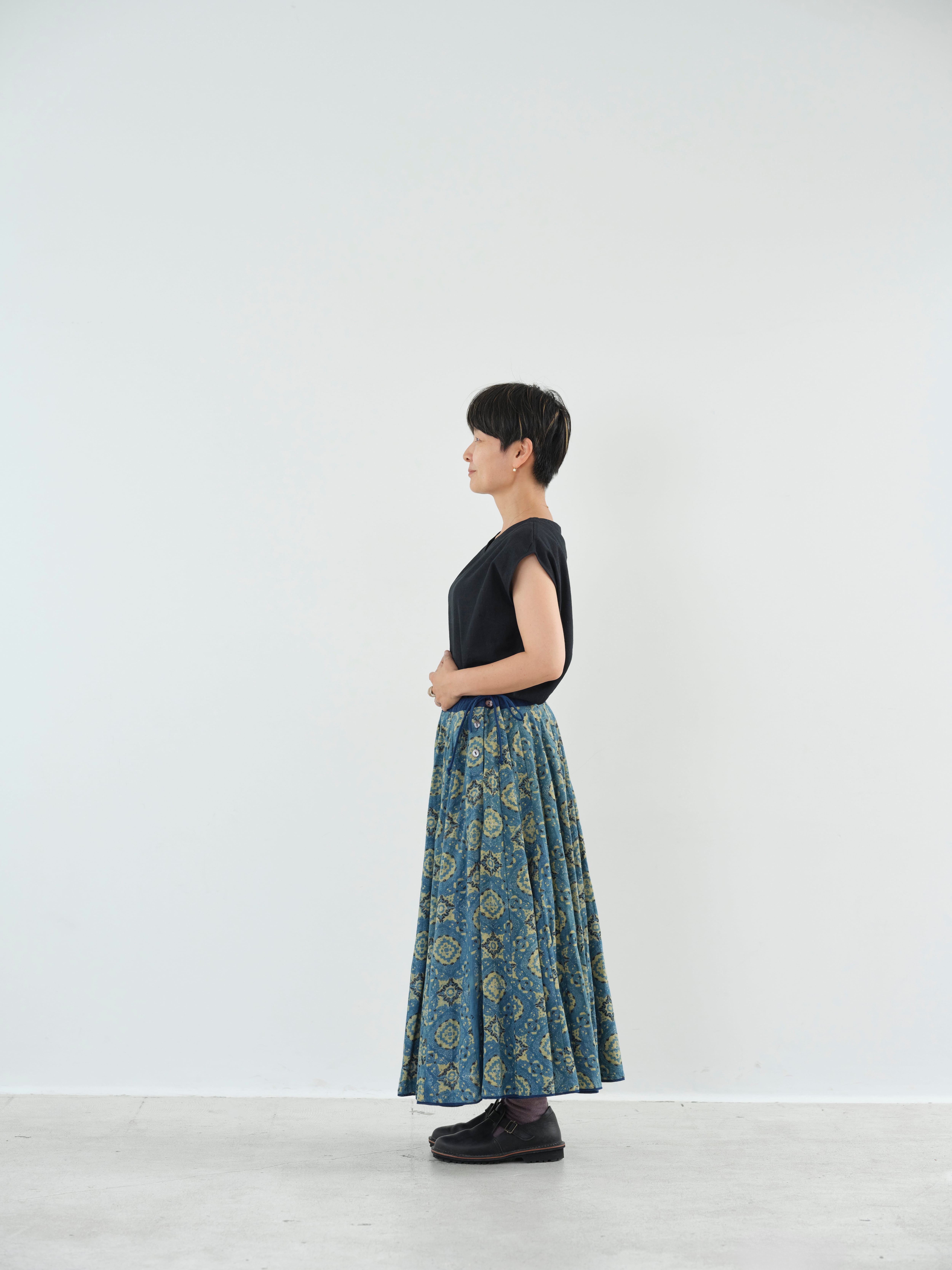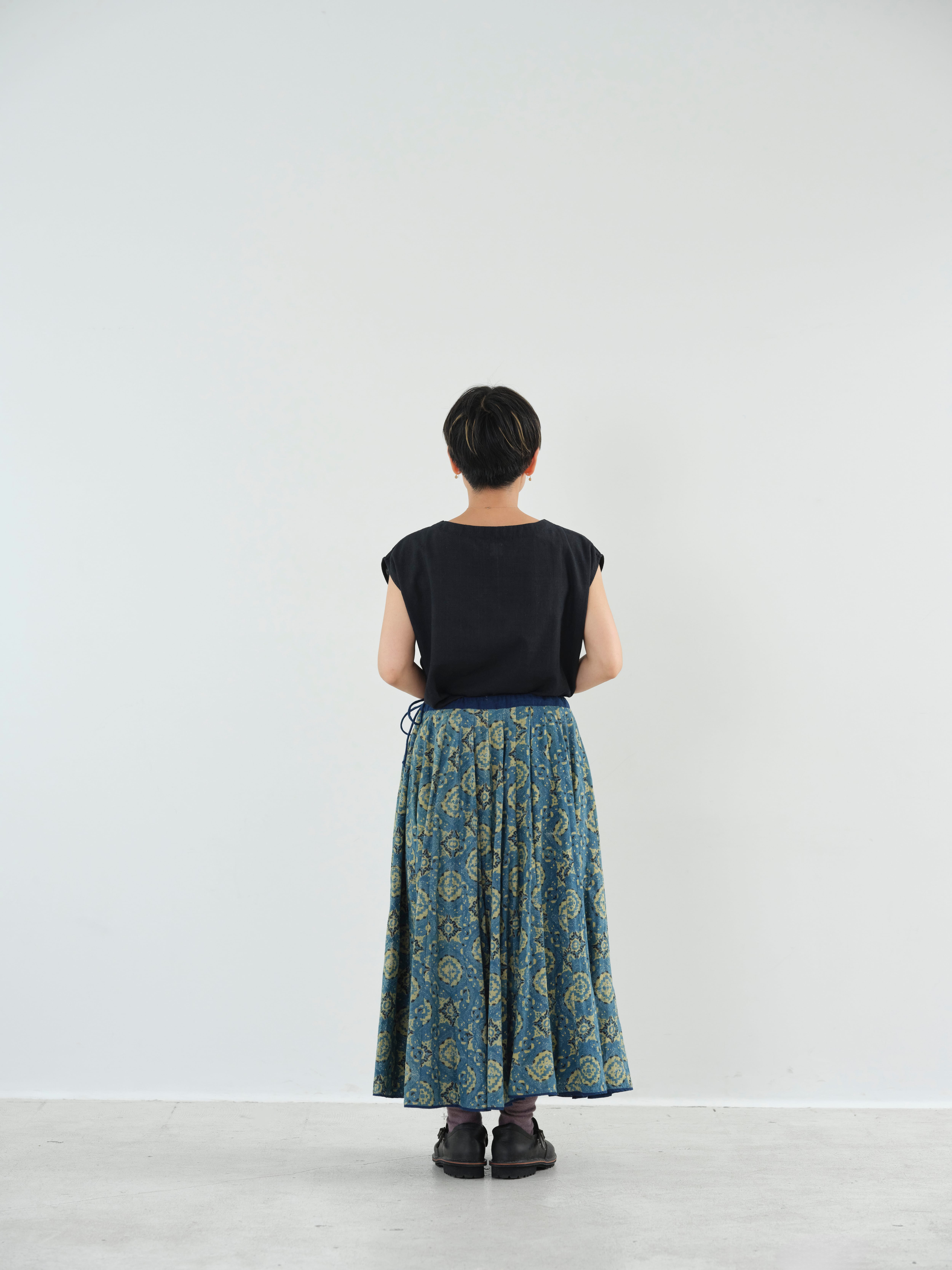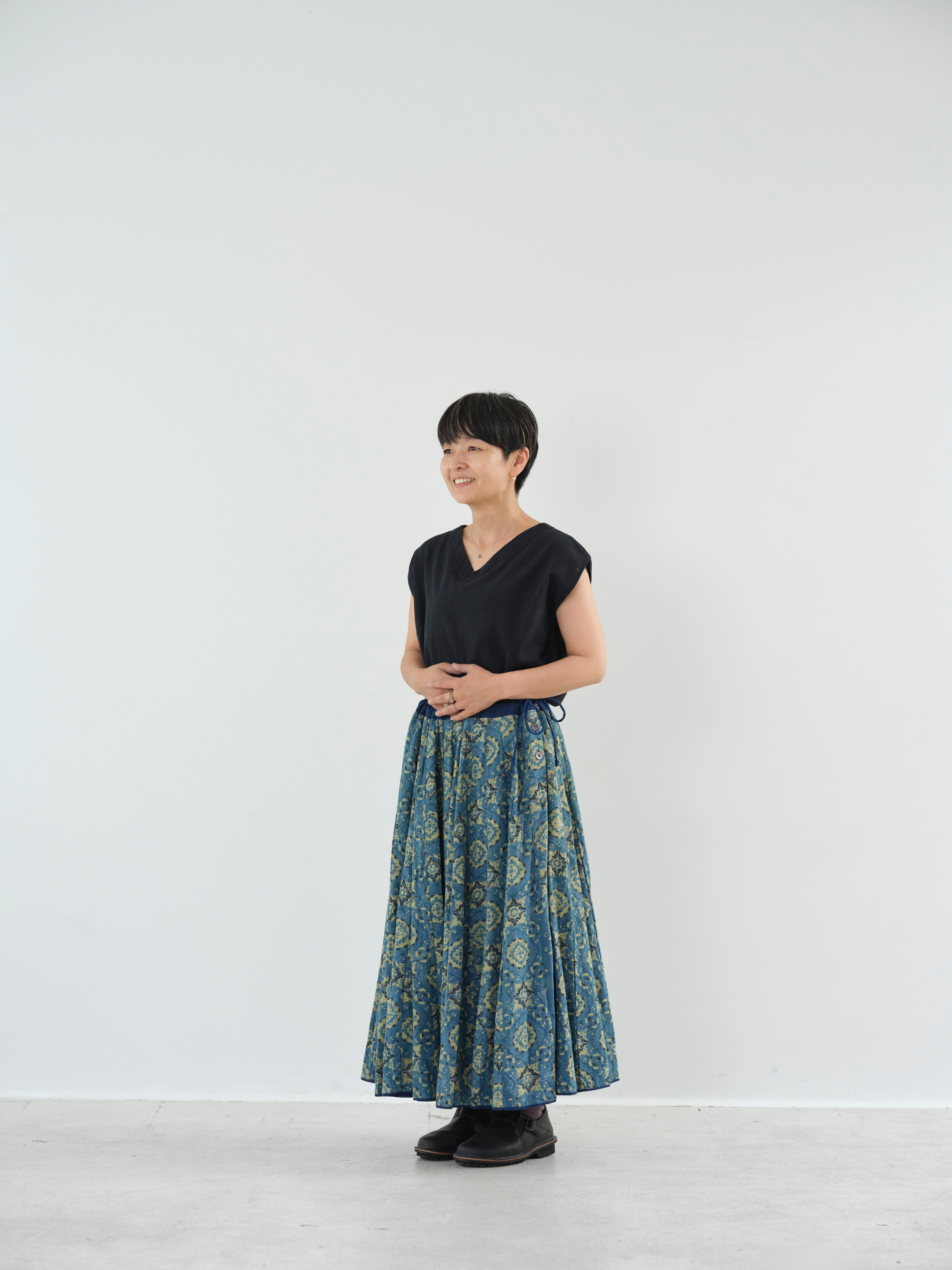 ふんだんに使った布と、西の大地で生き抜く人々を感じる意志ある雰囲気、シルエットも素敵です。インナーを調整していろんな時期に楽しんできていただける素敵なスカートです。