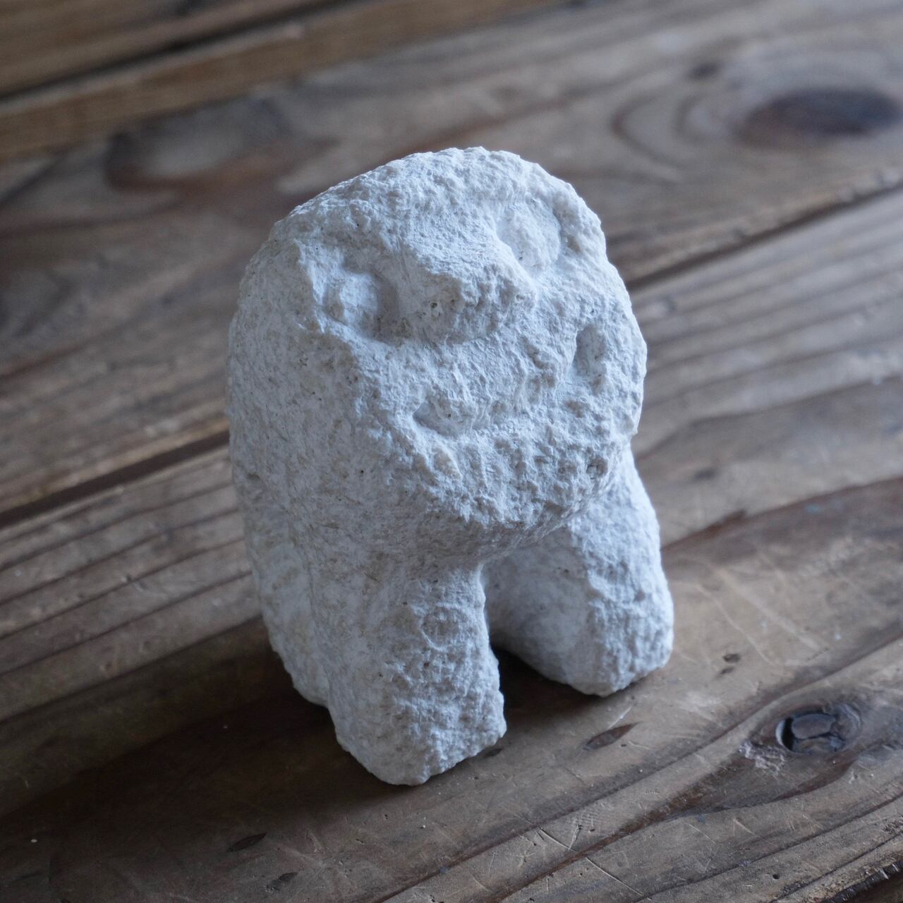 今回ご紹介する石獅子達は、勝連産の勝連トラバーチン(白い石)・港川産の粟石(ベージュの石)を素材に形作られています。一見軽石のような佇まいですが、手にするとしっかりとした重さがあります。是非そのギャップも楽しまれて下さいね。