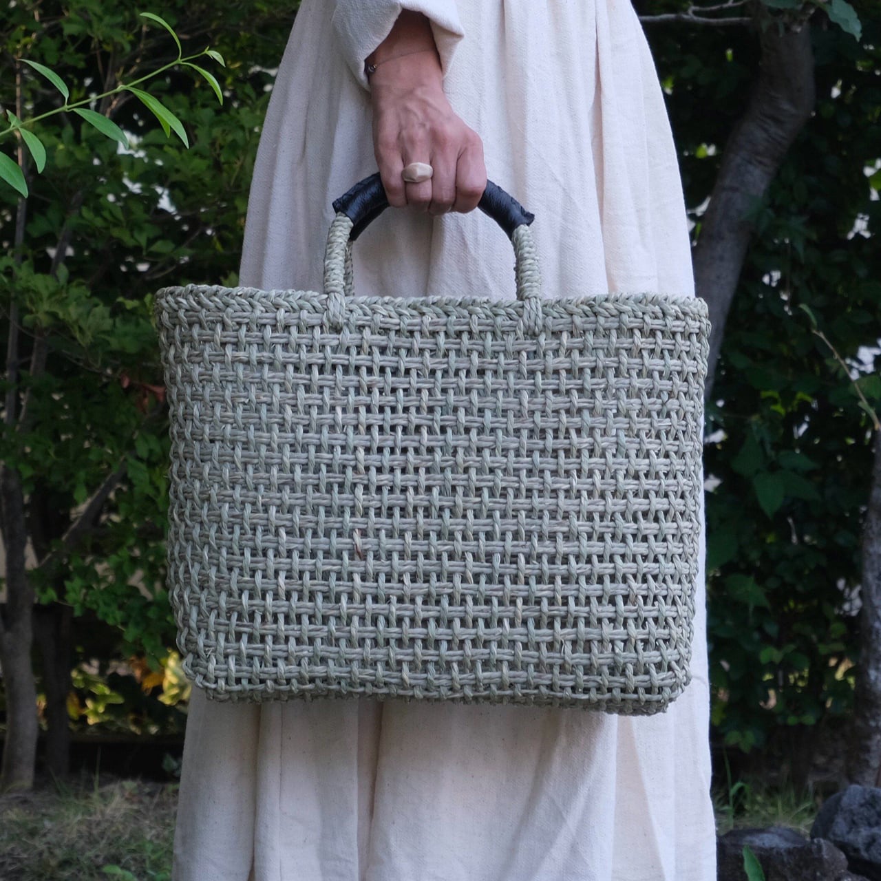 現代の買い物籠のようなイメージであったり,男性の方にも普段から持ってみたいと思って頂けるようないかごを,そんな想いものせながらこのサイズ感で形作って頂いています。