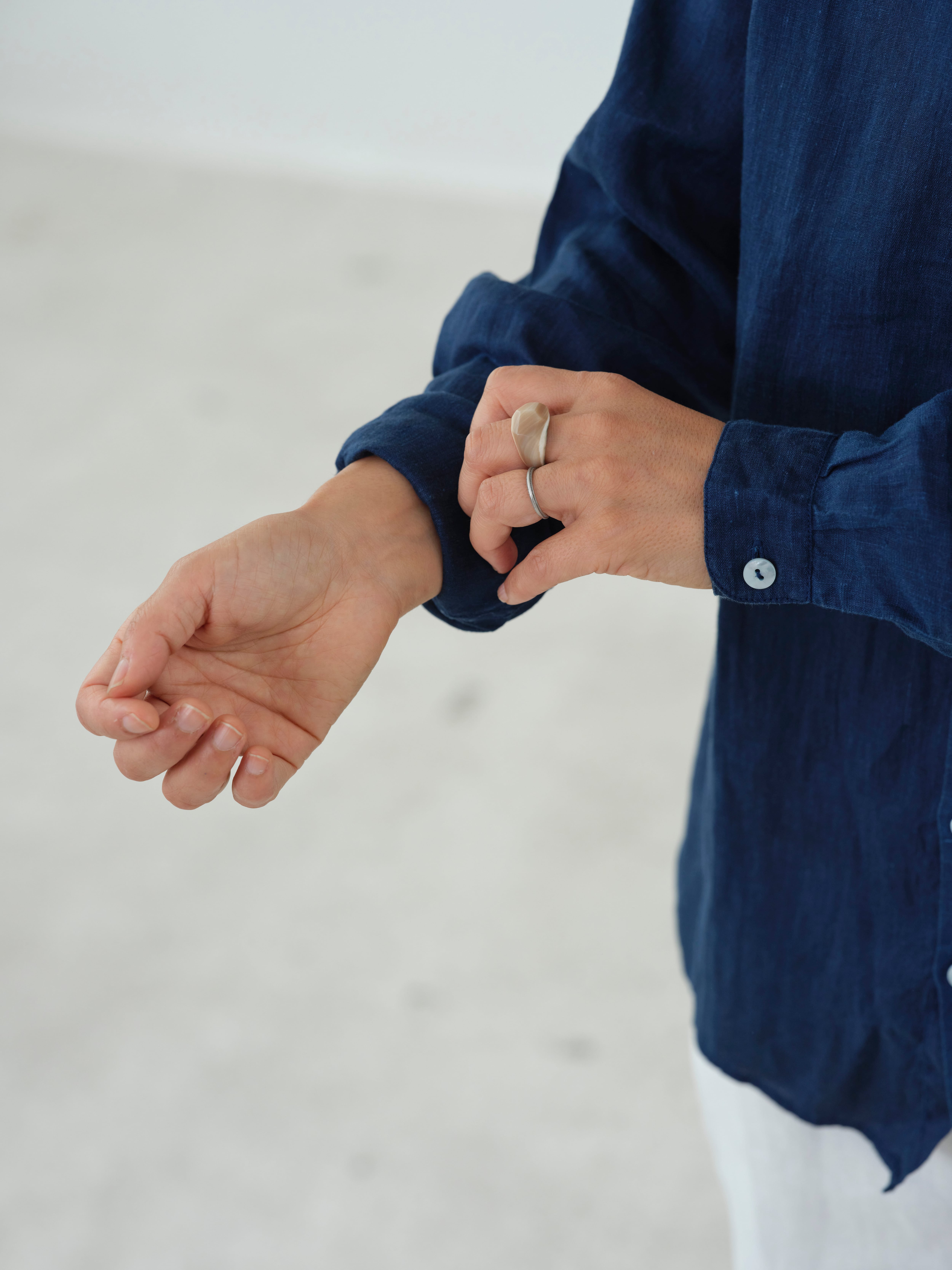 ※天然素材独特の糸の節やムラ感があります。風合いを重視し、繊維長が不均一な原料を使用している為ですので、表情の一部としてお考えください。生地の糸が切れ、穴が開く可能性がある為、糸の節は無理に引っ張らないようご注意ください。