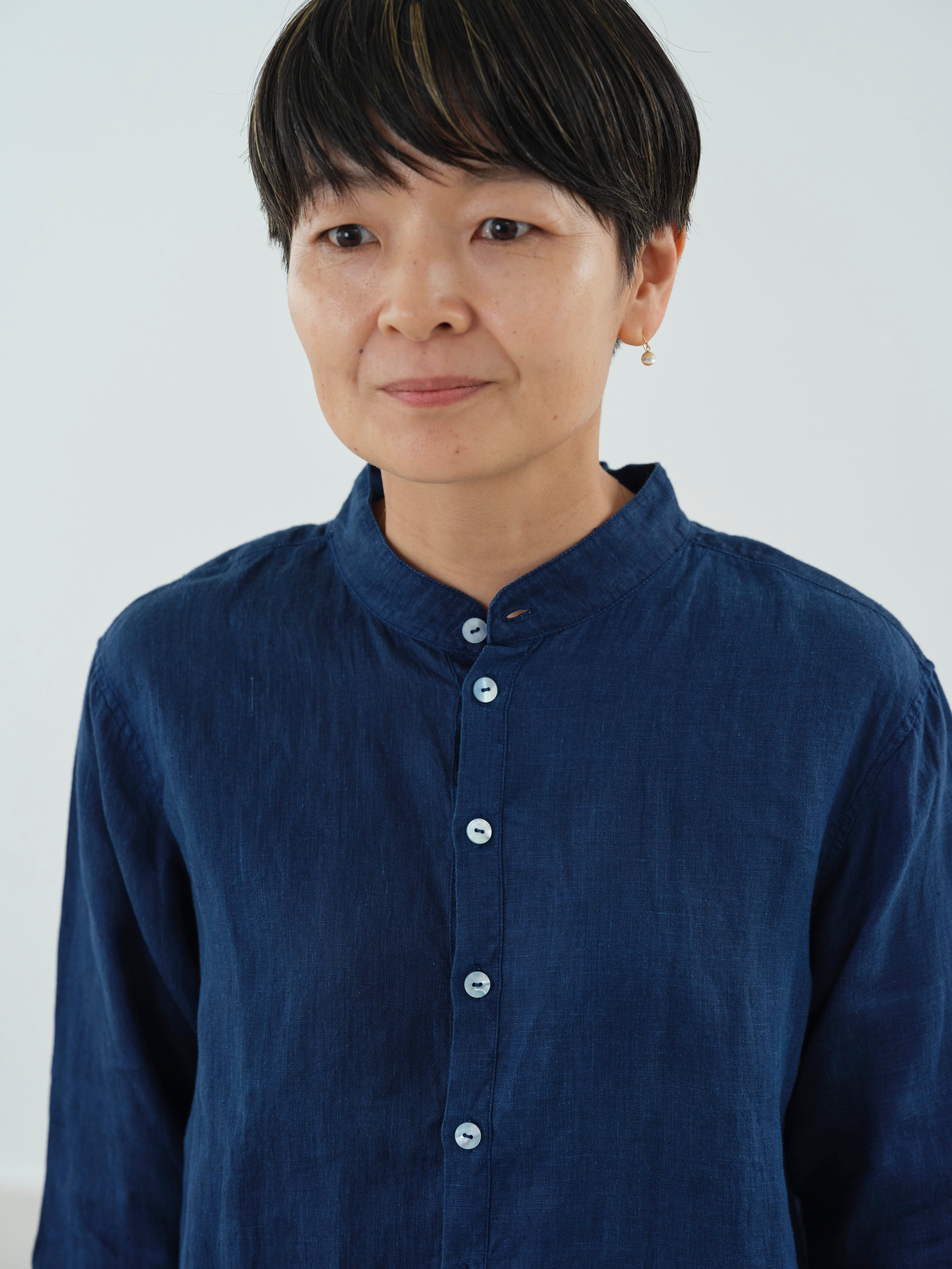 SH-132DC大麻シャツ(草木濃染)大麻100%の糸を経糸、緯糸に使用しています。大麻は強靭な繊維ですが、経年変化で肌に徐々に馴染んでゆき、麻から綿のような質感の変化が楽しめます。大麻の特性であるひんやりとした触感は洗濯を繰り返しても継続し、真夏でも快適に着用が可能です。大麻布の歴史については近世麻布研究所所長 吉田真一郎氏の記事に、大麻・苧麻・亜麻の違いはボーケンさんの記事に詳しいので参照ください。シャツは現代の民族服を構成する洋服としての提案になります。構成は洋服のルールに則りながら、極力デザインを削ぎ落とし、機能性に基づいたパターンメイクとしています。具体的には袖山をいせ込み、袖底を高めに設定することで腕周りの運動量を、背中のヨークにタックやギャザーではなく、いせを入れることで背中の運動量を確保しています。定番のSH-81よりも若干ゆとりを持たせたシルエットです。ボタンには薄い白蝶貝を用いてます。