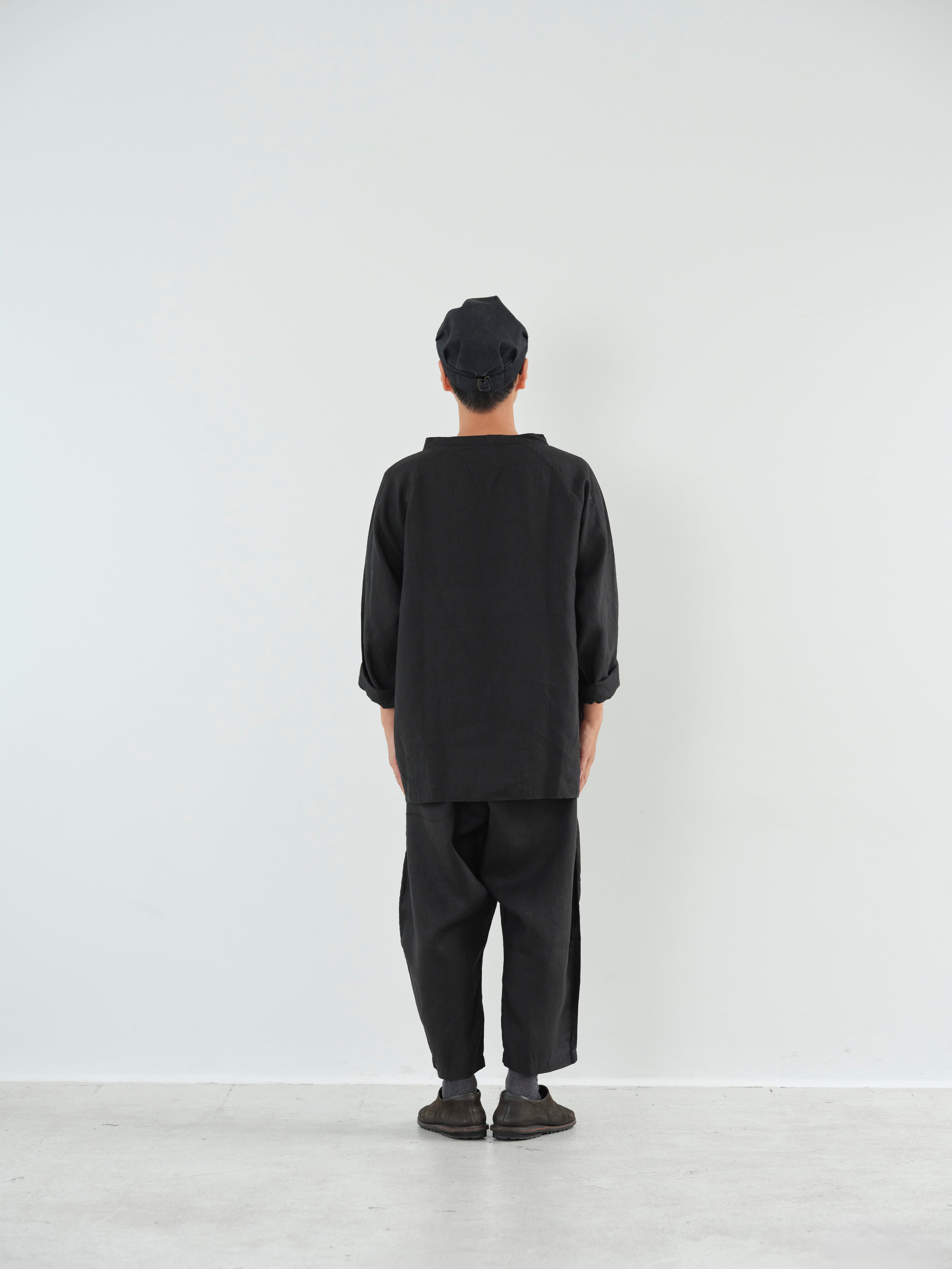 ※強撚糸を使用している為、着用により伸びることがありますが、洗濯後に寸法を整えて干すと、元の寸法に戻ります。天然素材独特の糸の節やムラ感は生地の表情とお考えください。糸の節を引っ張ると糸が切れる場合がある為、ご注意ください。
