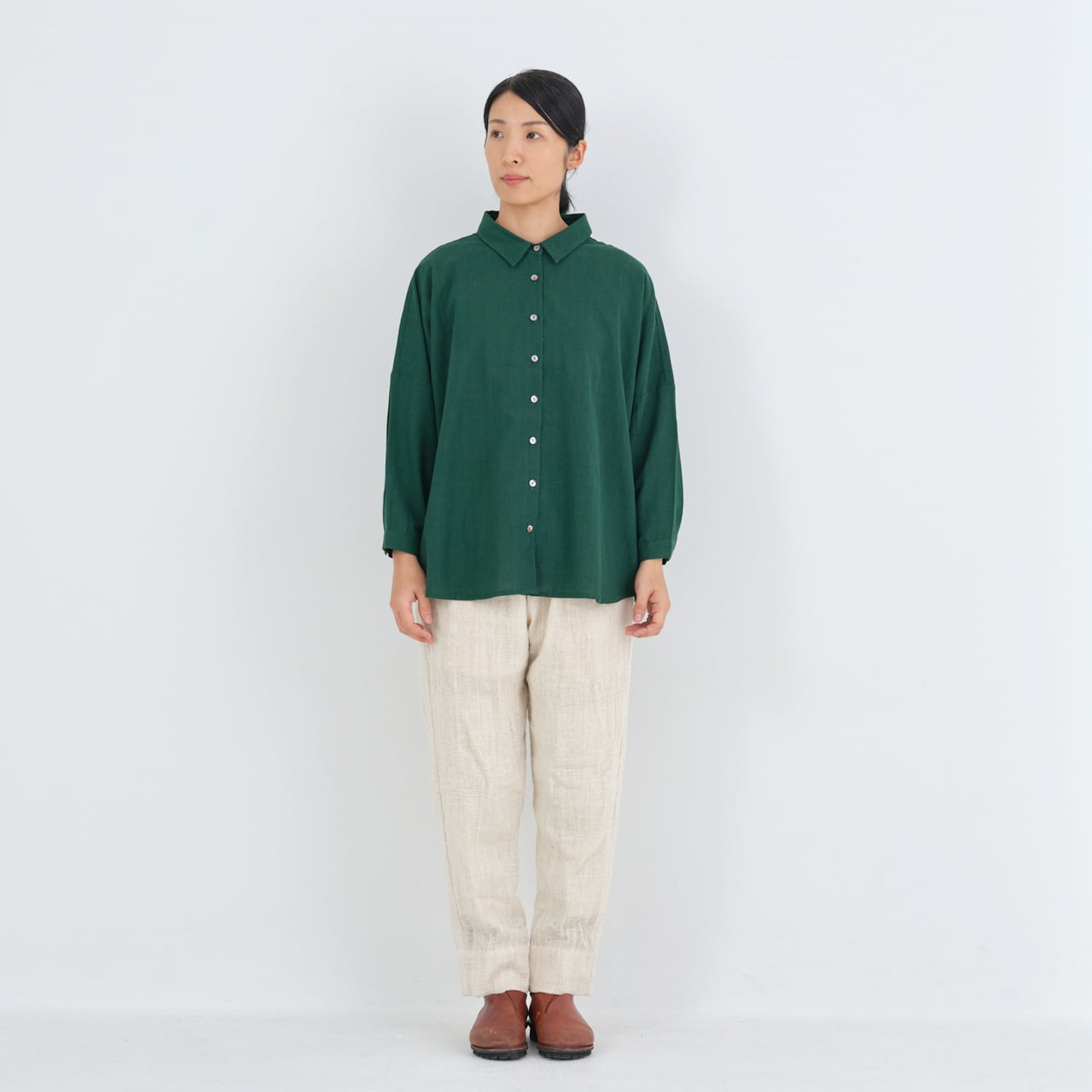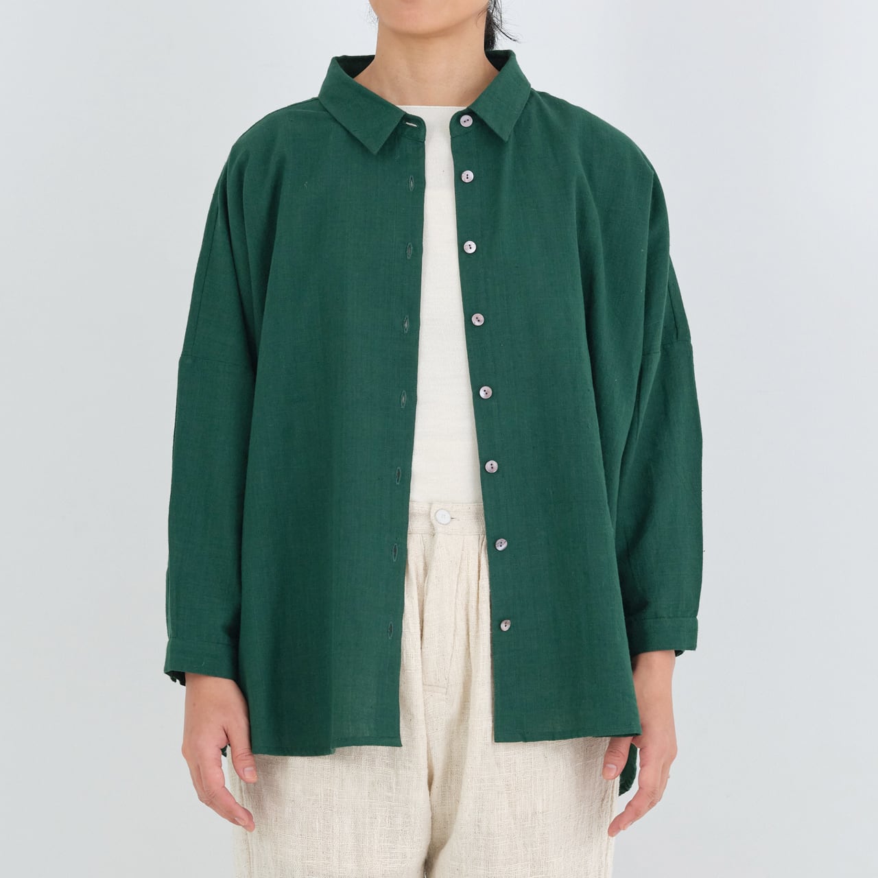 CALICO FT1080 ルーズブラウス しっくりカディ(緑,グレー,黒,生成)