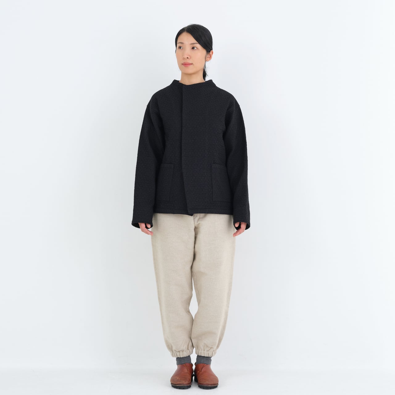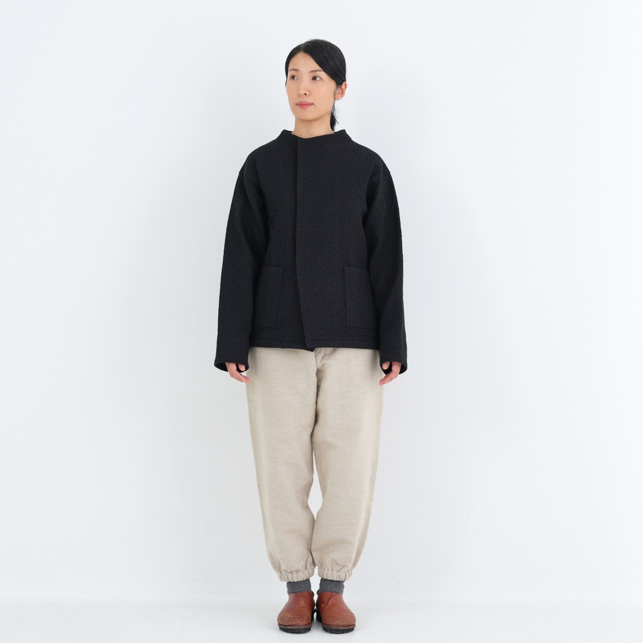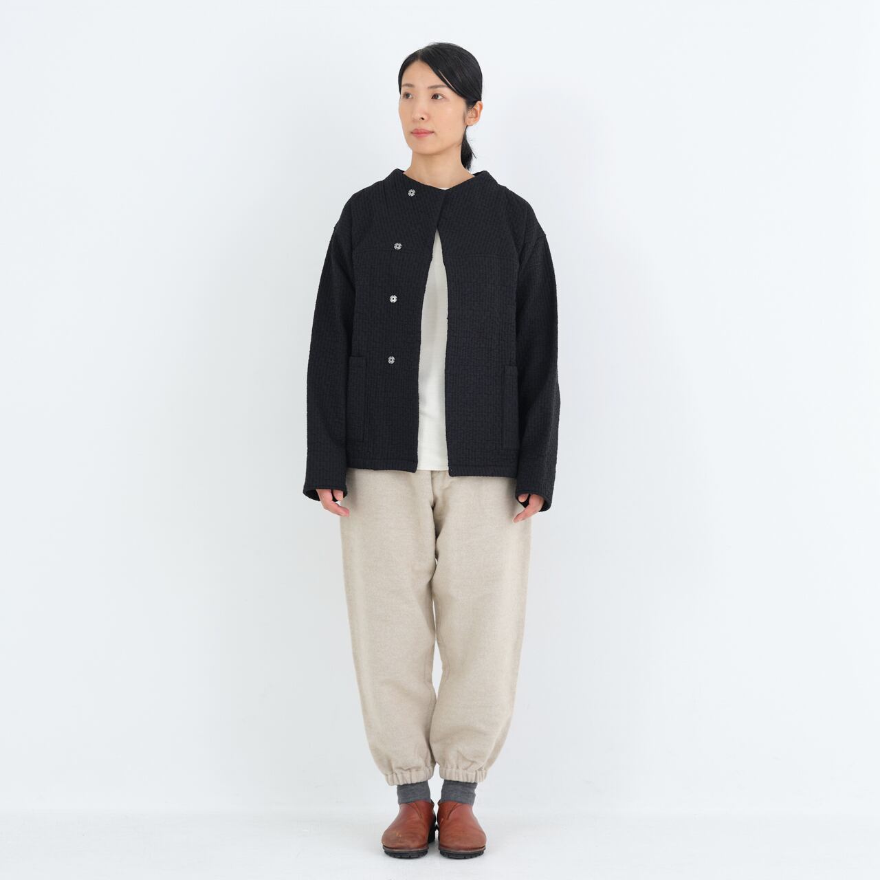 中わた刺し子織ジャケット(黒,黒茶,生成/size1,2)JK-64