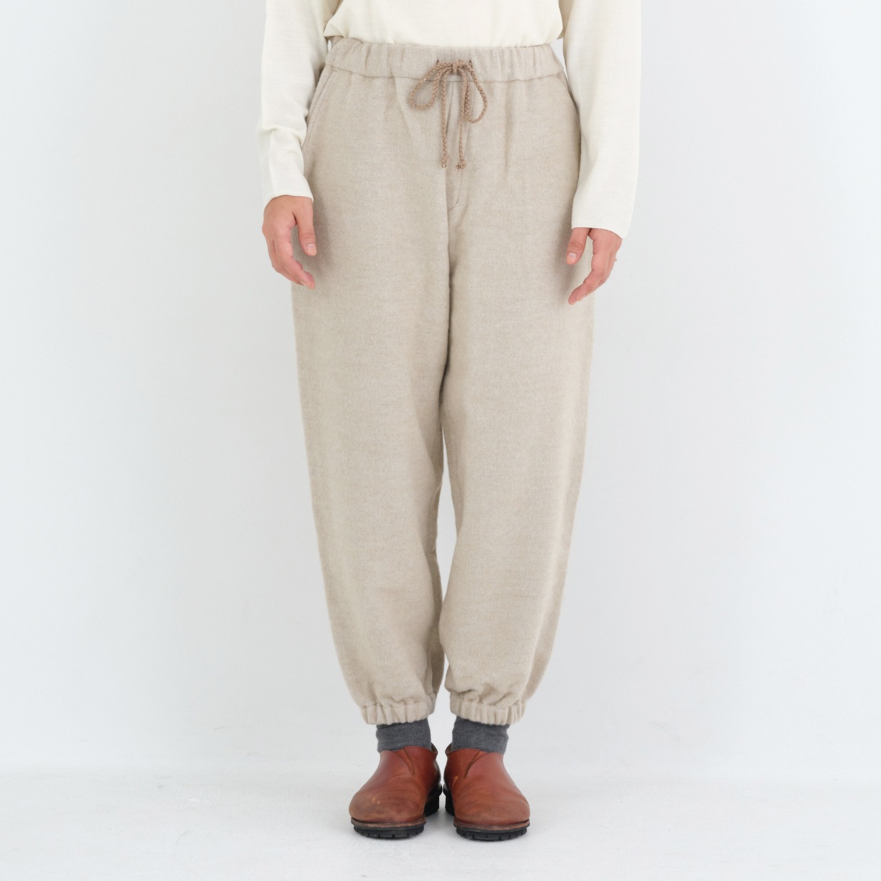 ウールシルクキャメルパンツ(白茶,黒/size1,2)PT-99
