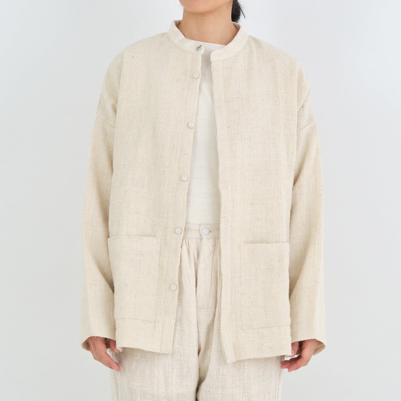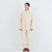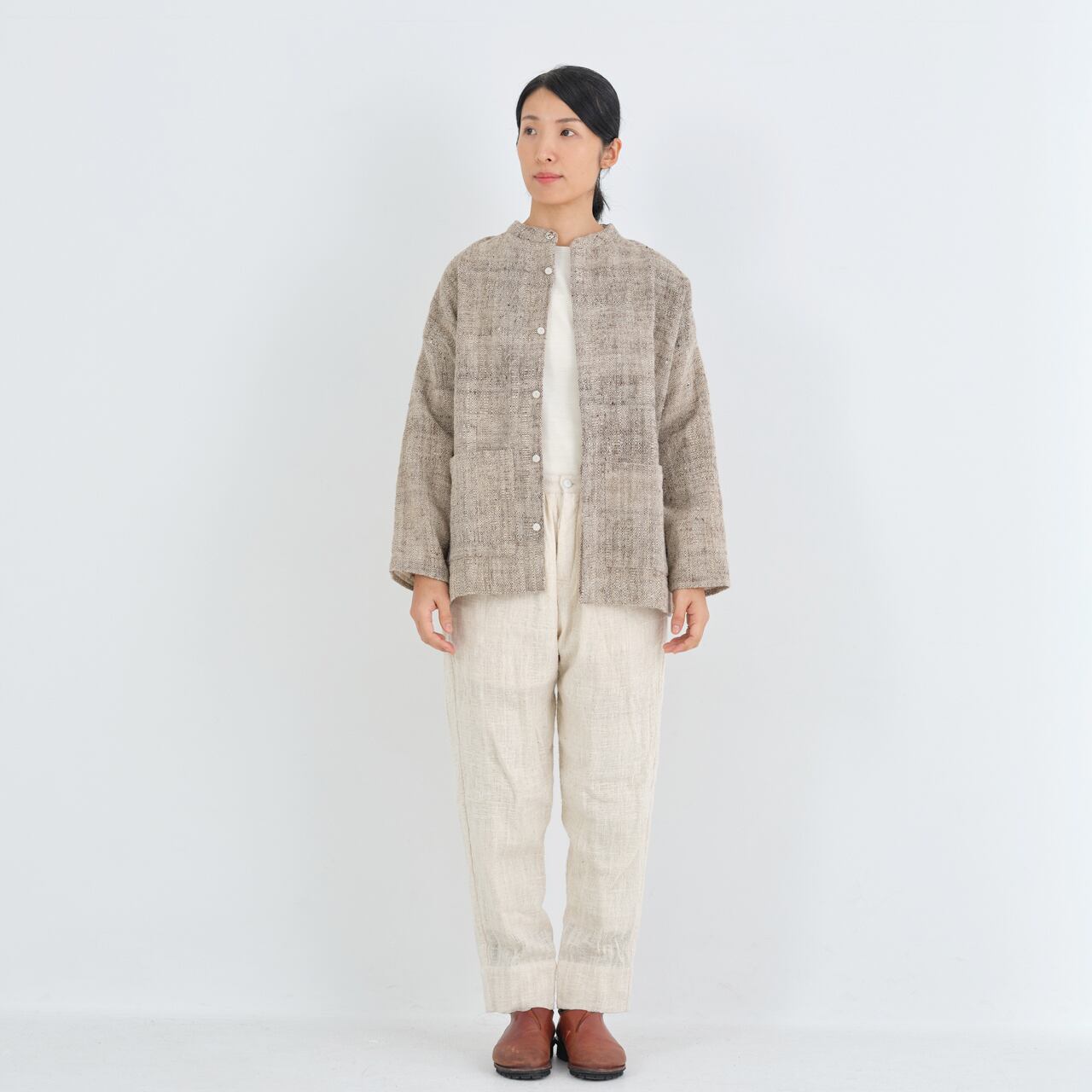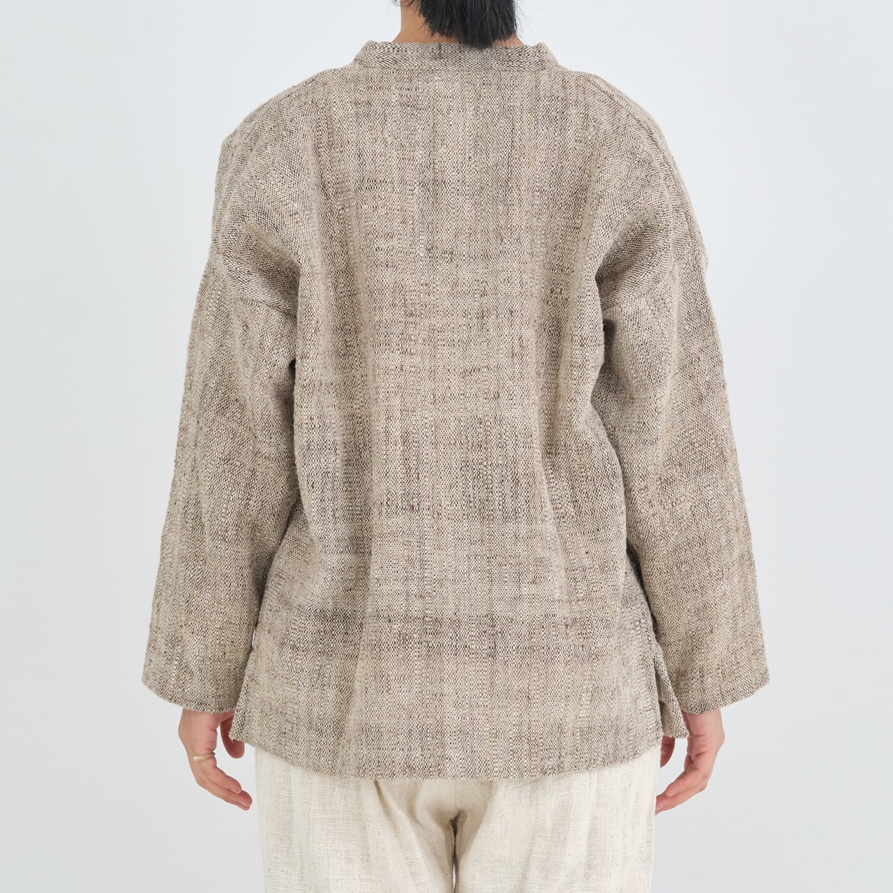 ゴワゴワした粗野さが魅力のウール生地に、肌馴染みのよいカラコットンを少し混ぜています。