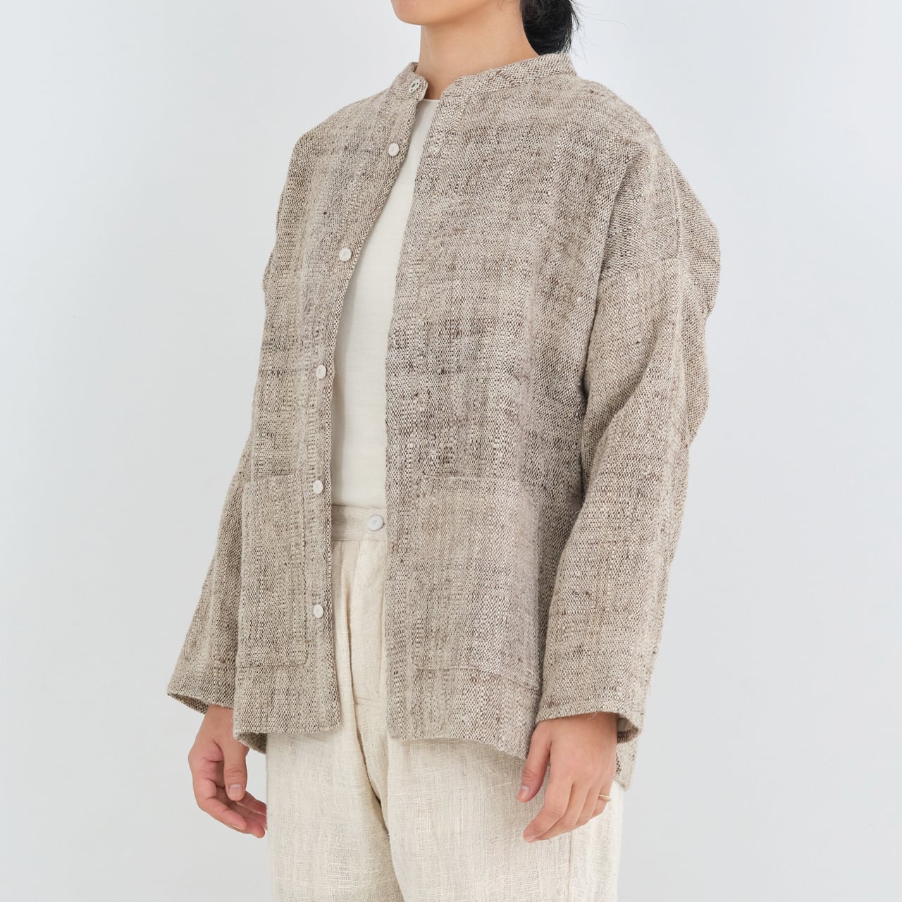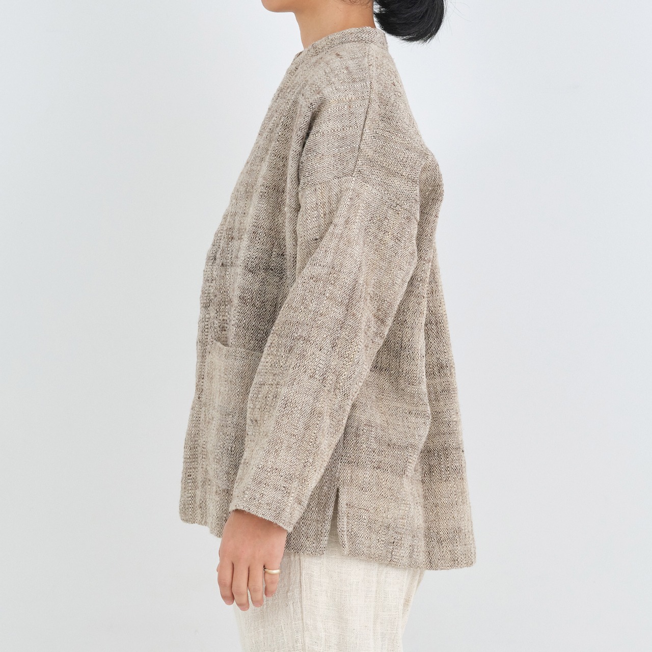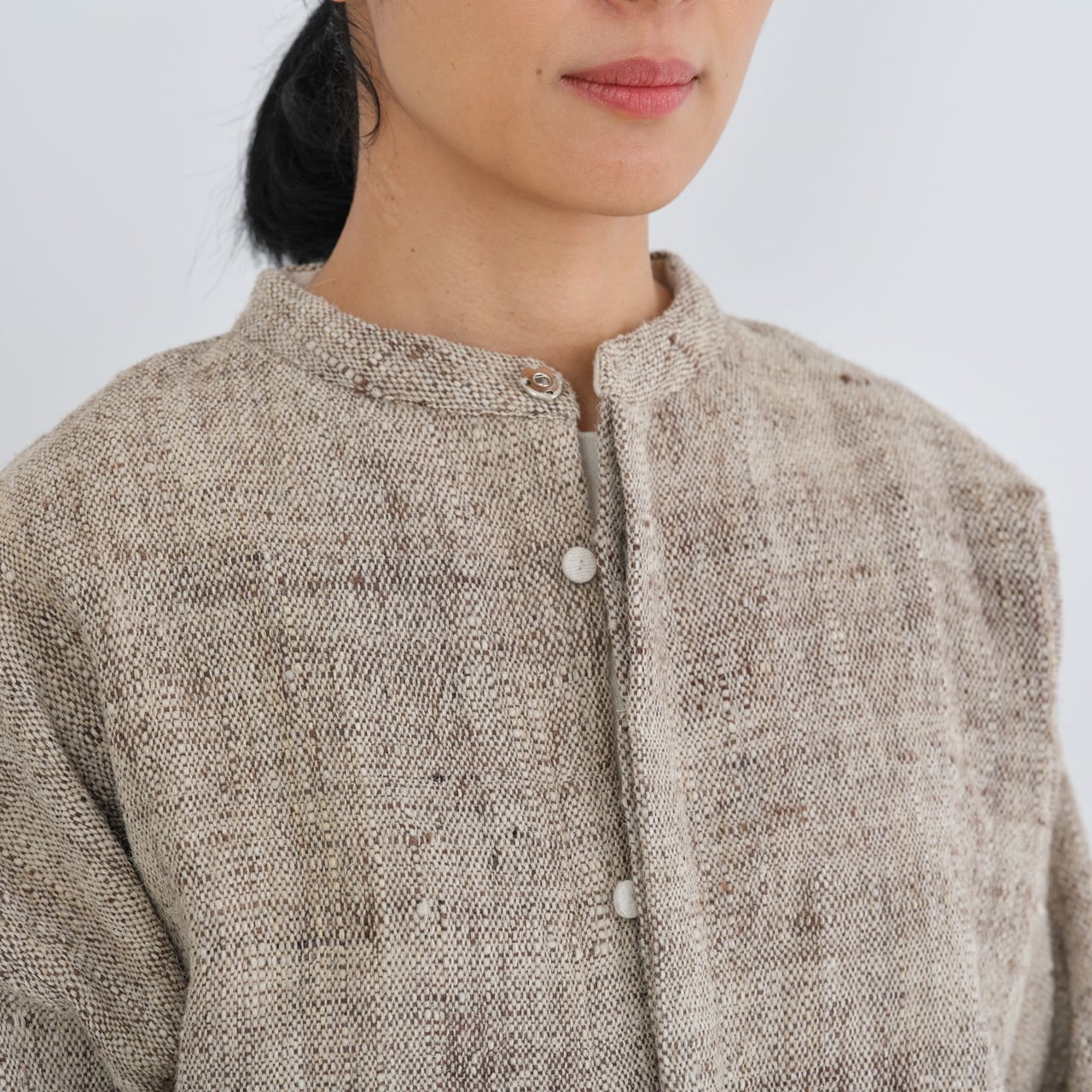 CALICO 手織シープウール スタンドカラージャケット(ブラウン/sizeM,L)