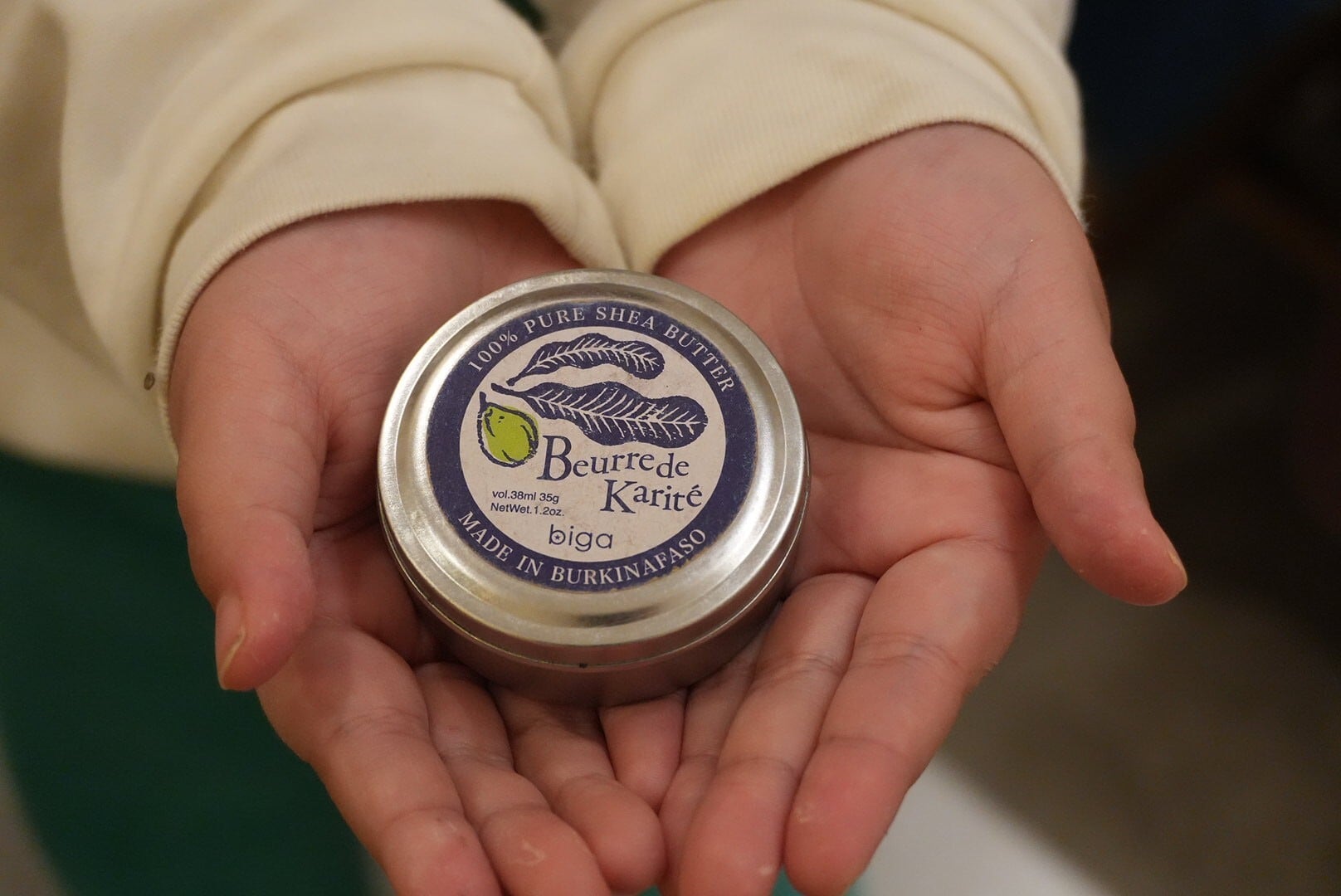 自然の恵み、そして大事に大事に育ったシアの木の恵み、完熟したシアの実を拾うお仕事の方、その実をバイクで集める仕事の方、そして加工する仕事の方、など、bigaのゆりさんに伺ったお話もまたなんだかとってもよくて、村のどんな年代の方にも適した仕事があるのはいいなぁと思っています。そしてこの度も巡り巡ってテクラにやってきました。