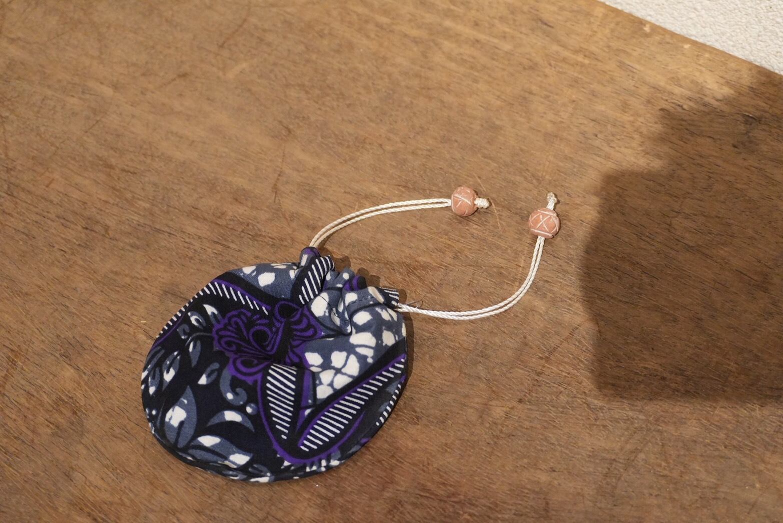 このポーチもまたかわいいサイズ、アクセサリーやお気に入りの石など入れても良いです。わたしはコンタクトレンズの予備の交換分を入れています。